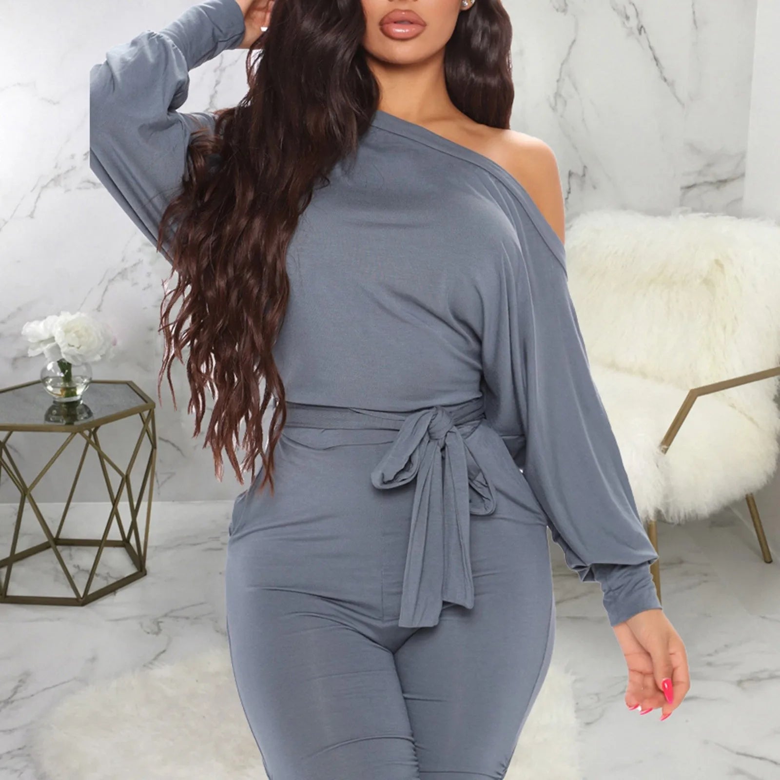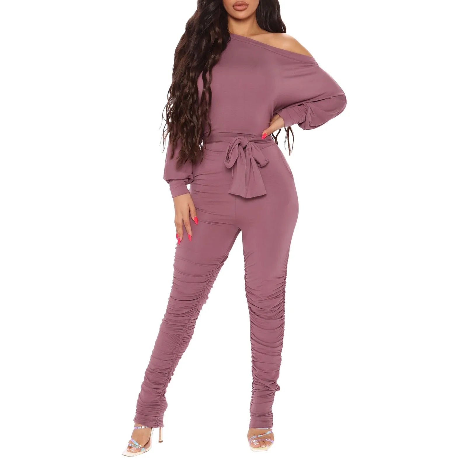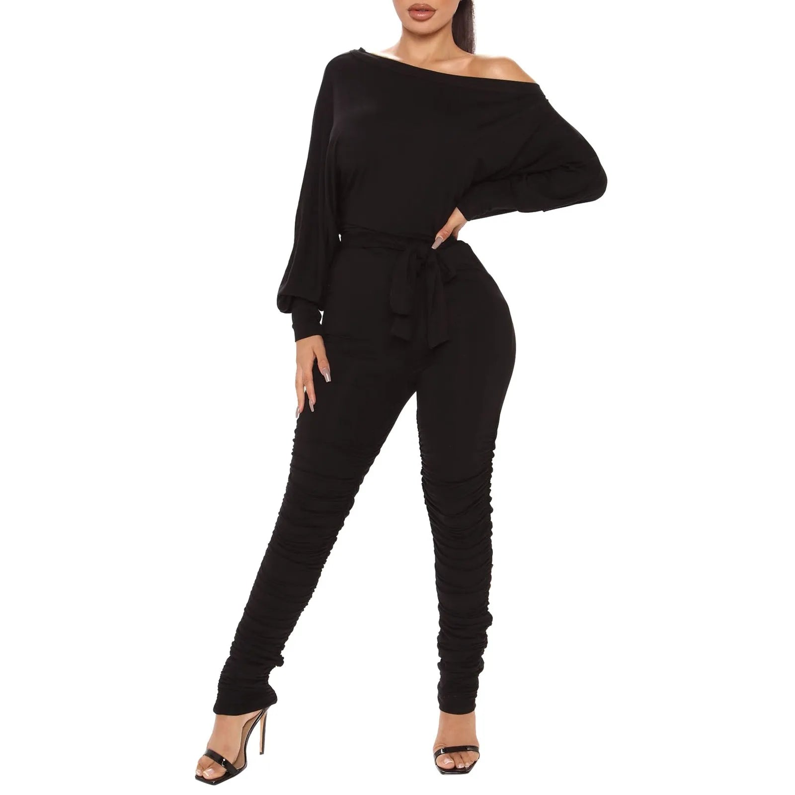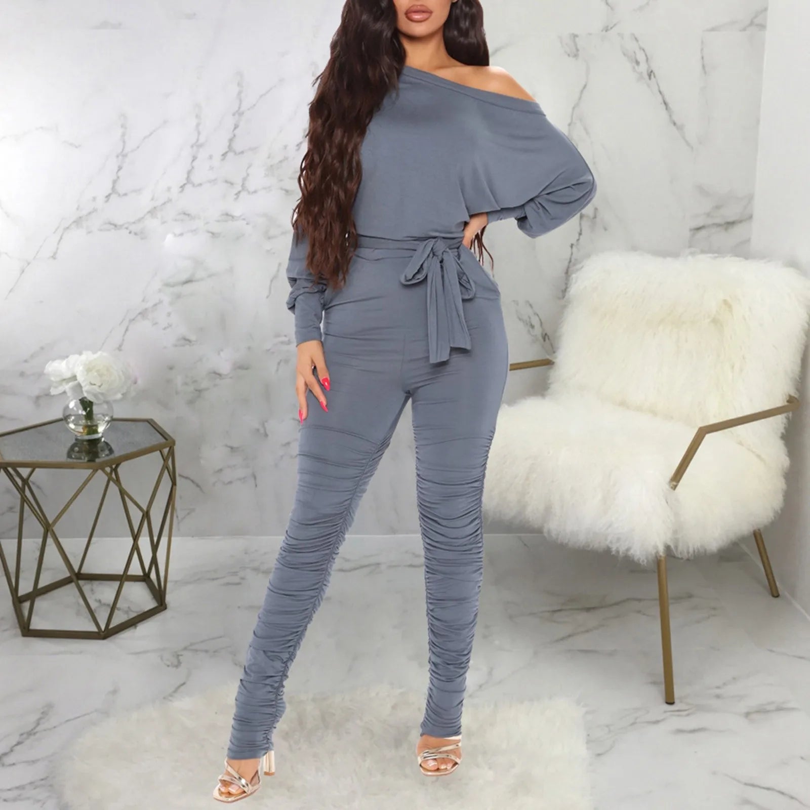 Stylish Design: Features an elegant off-shoulder design complemented by ruched ankle-tight finish.