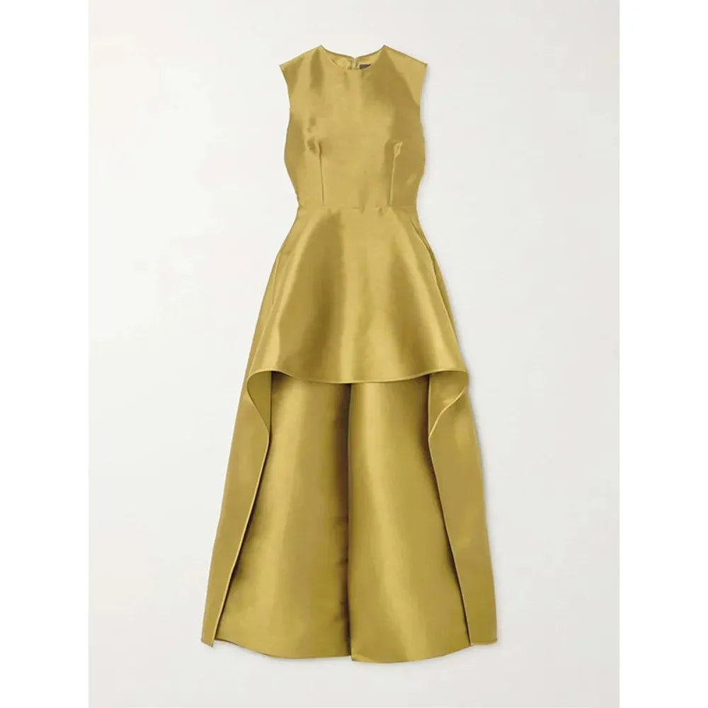 Chic Olive Green Peplum Top with Wide-Leg Pants Ensemble