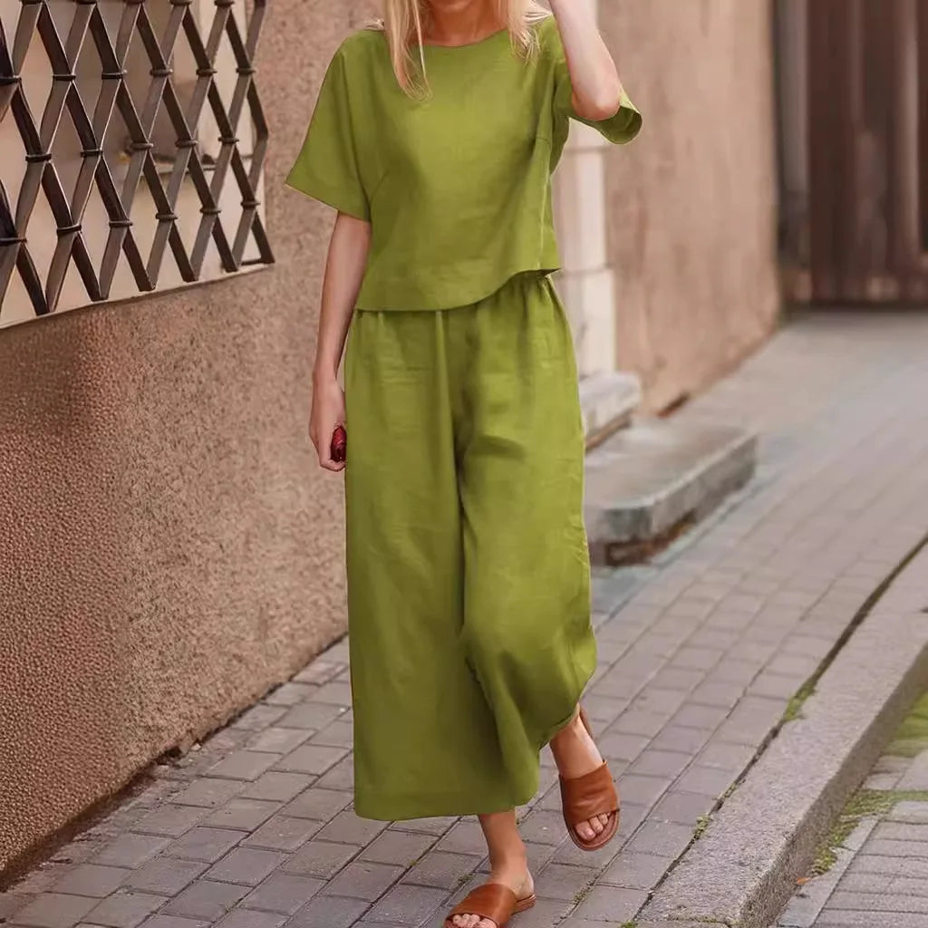 2025 Short Sleeve Shirt Top Wide Leg Pants Two Piece Set