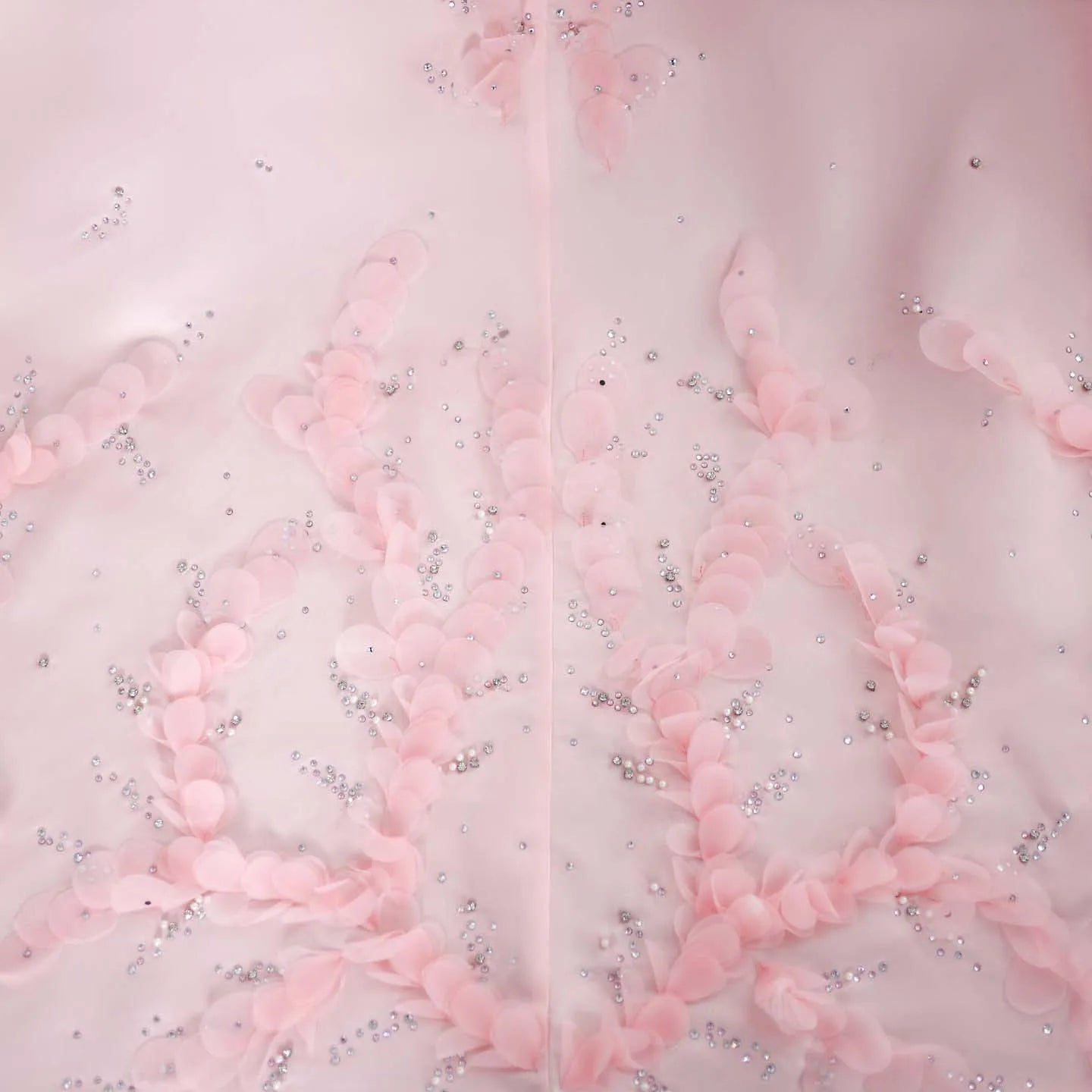 فستان زفاف أنيق من قماش ناعم وبتصميم فريد يبرز القوام، مع خط عنق عريض وقصة من الأعلى تلتف حول الجسم بشكل مستقيم، ويتزين بتفاصيل من الدانتيل أو التطريز على الجزء السفلي والأطراف، مع ذيل طويل ينساب بانسيابية على الأرض، مجسدًا مزيجًا من الرقي والجمال الطبيعي