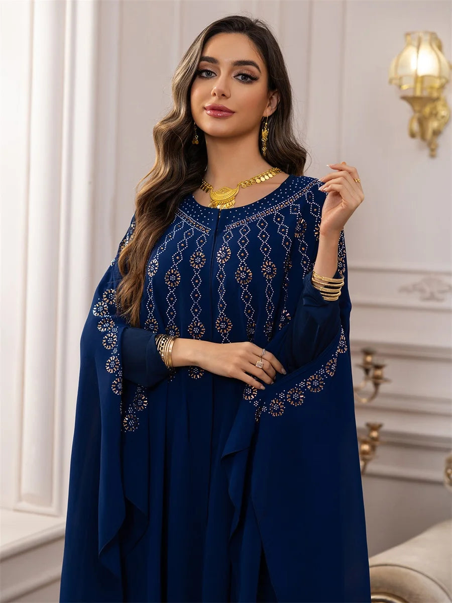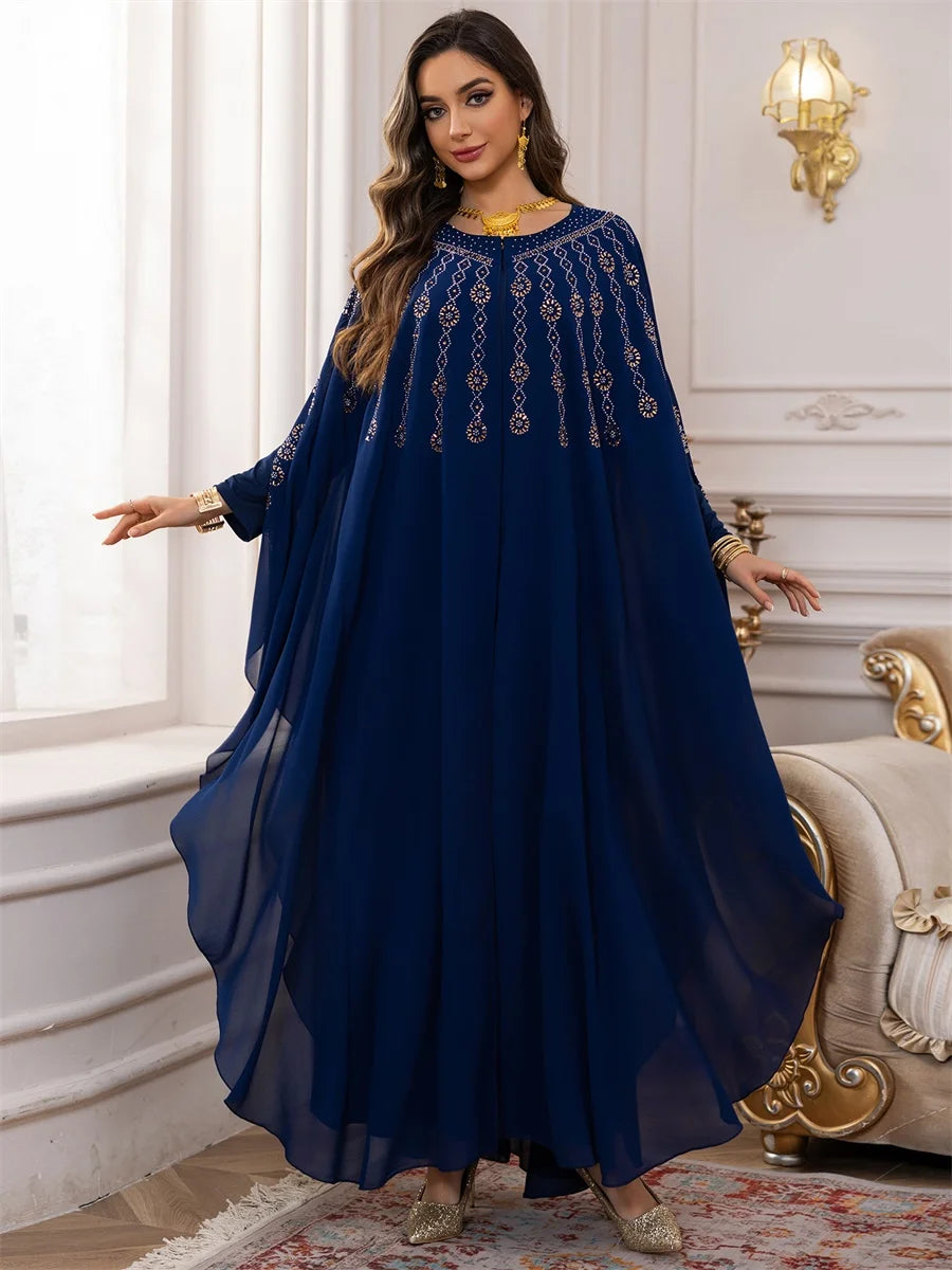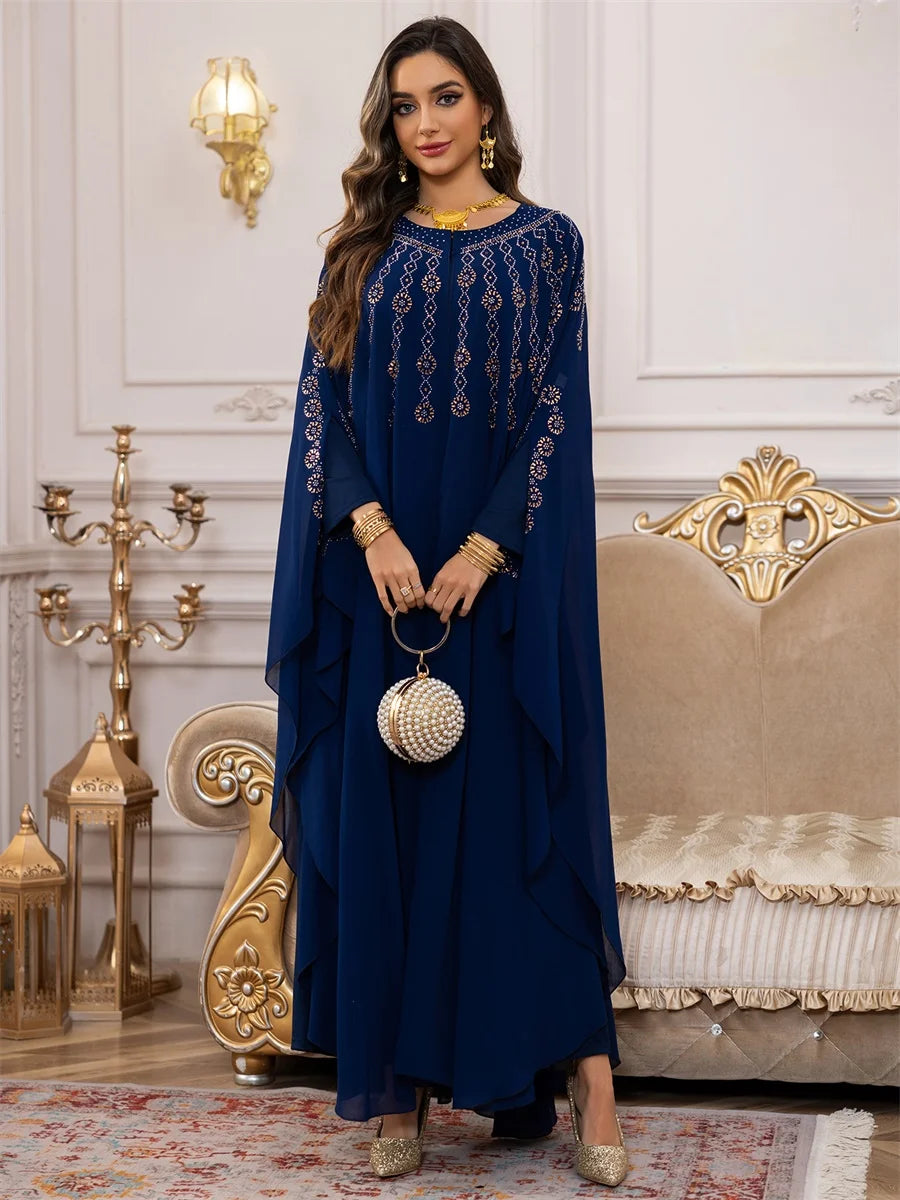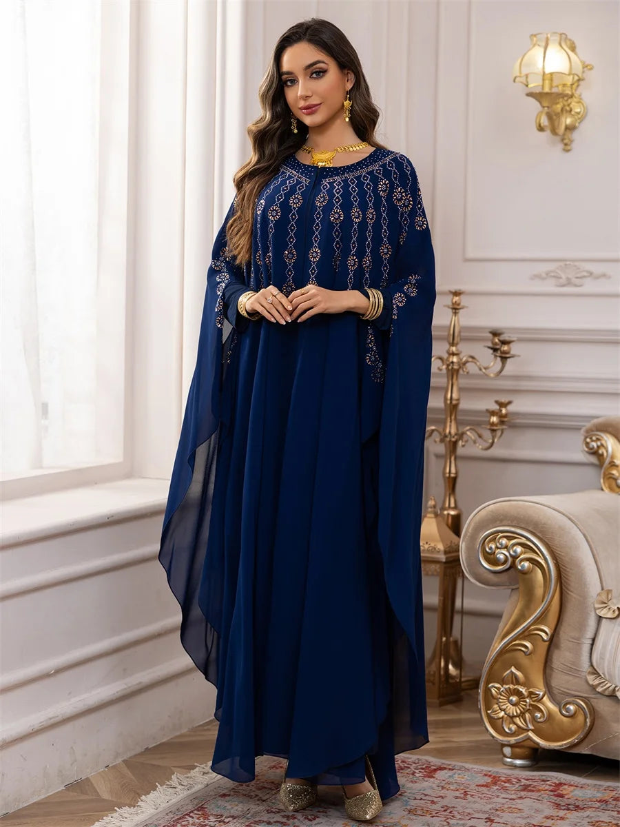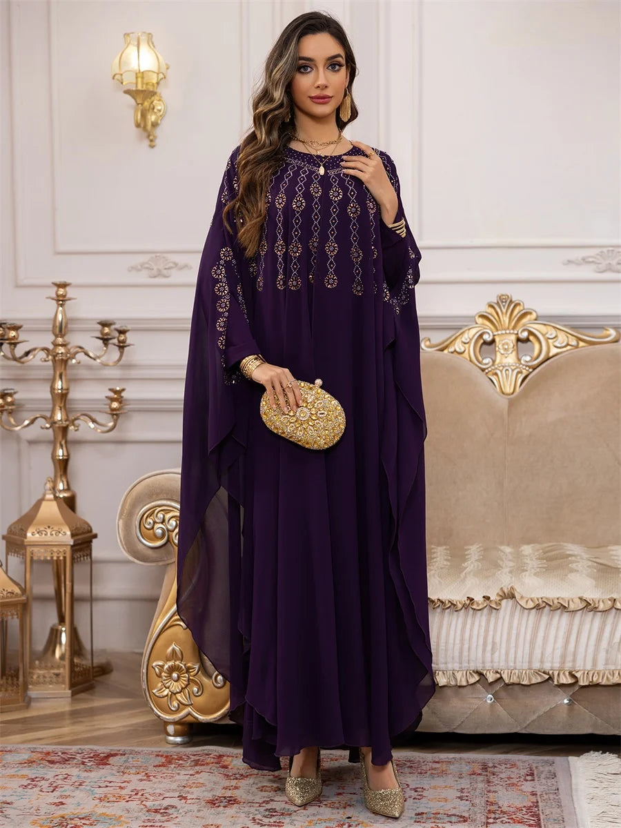جلابية بطبقات انسيابية وتطريز ذهبي فاخر