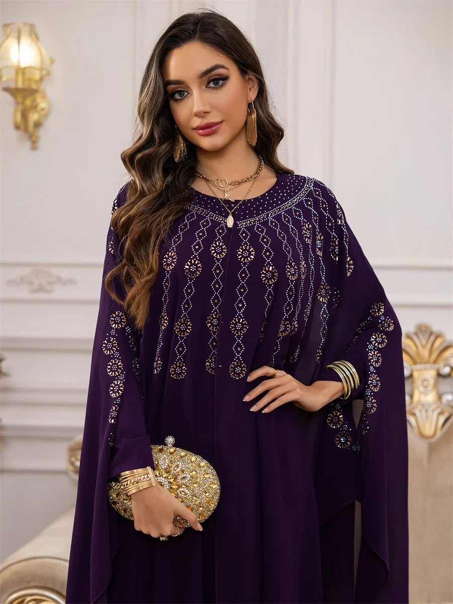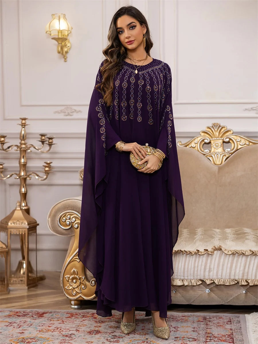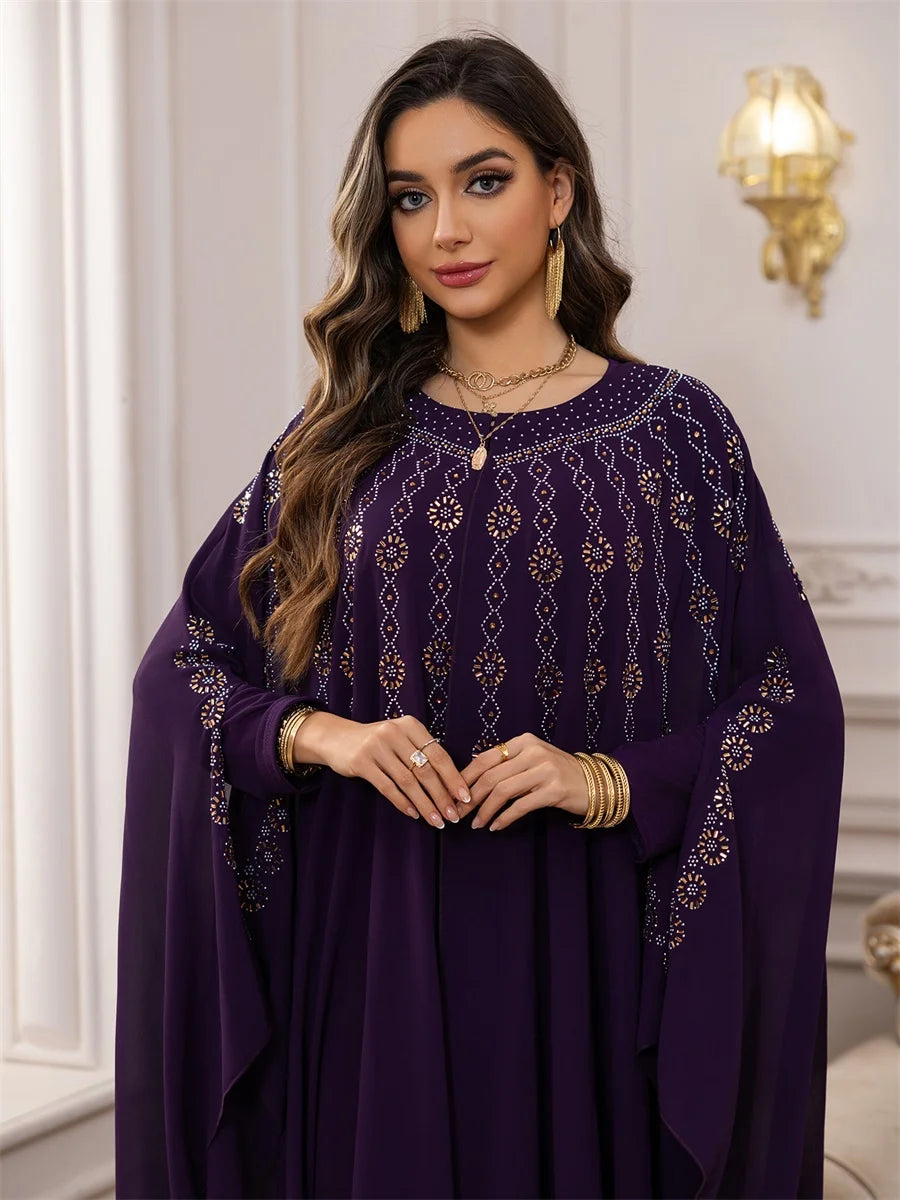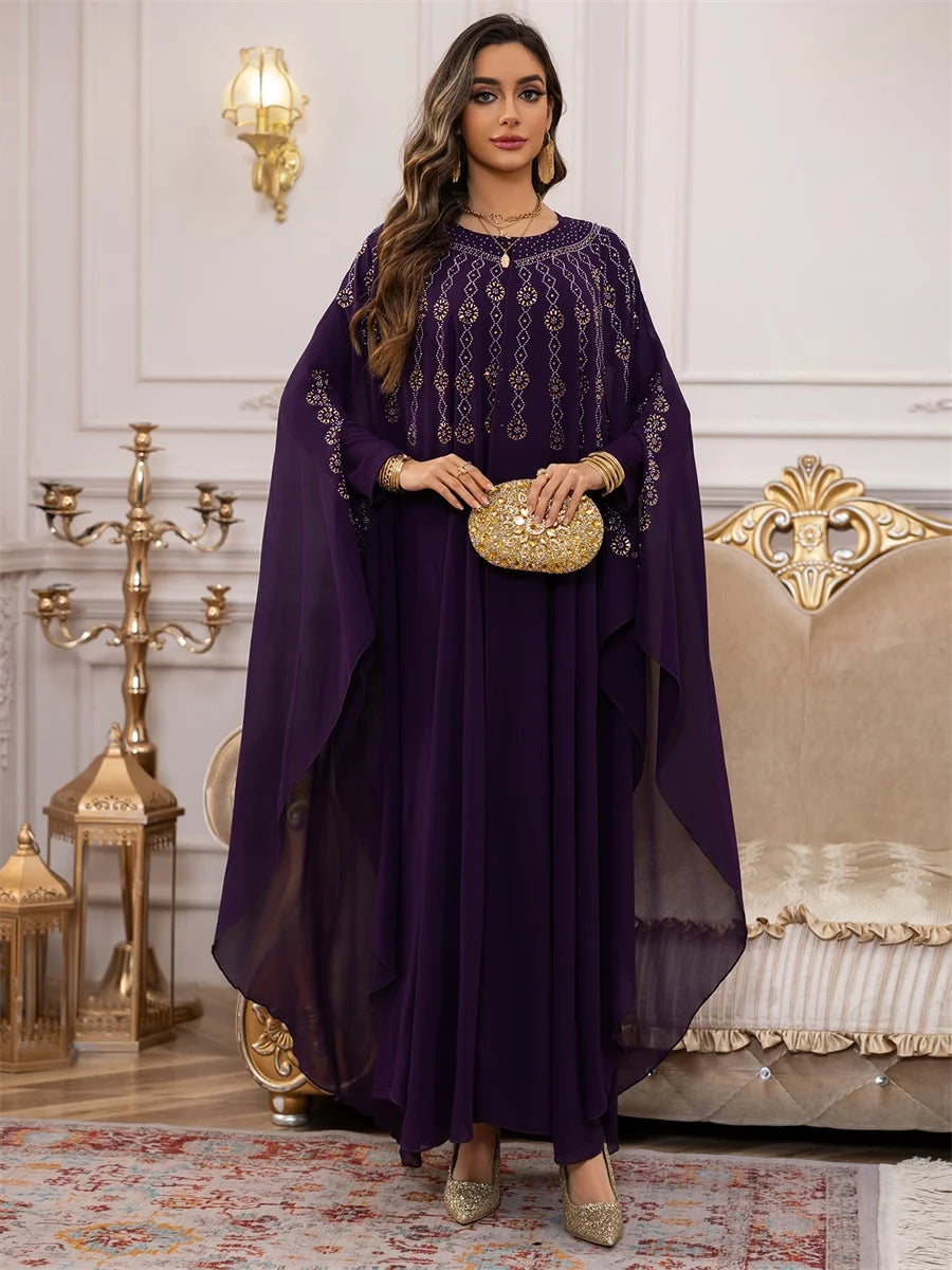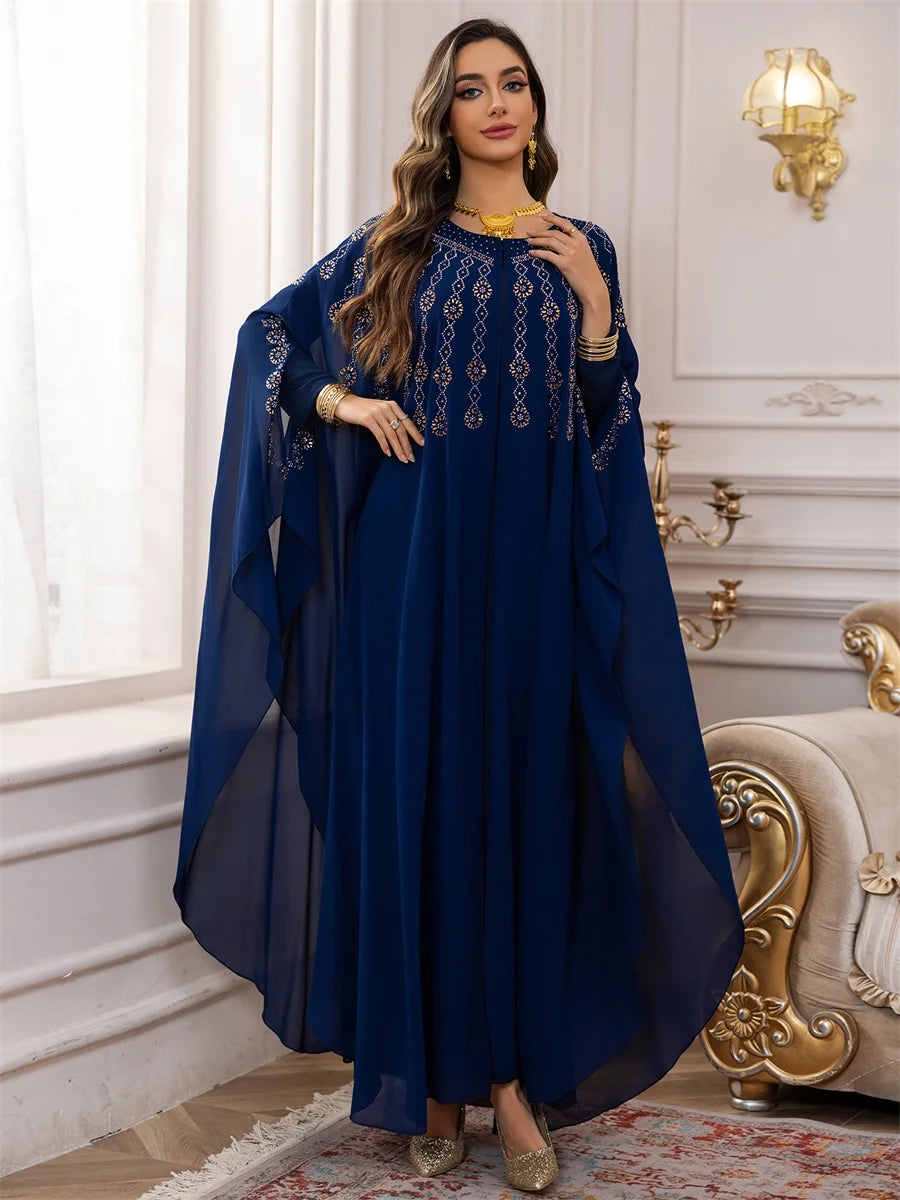 جلابية بطبقات انسيابية وتطريز ذهبي فاخر