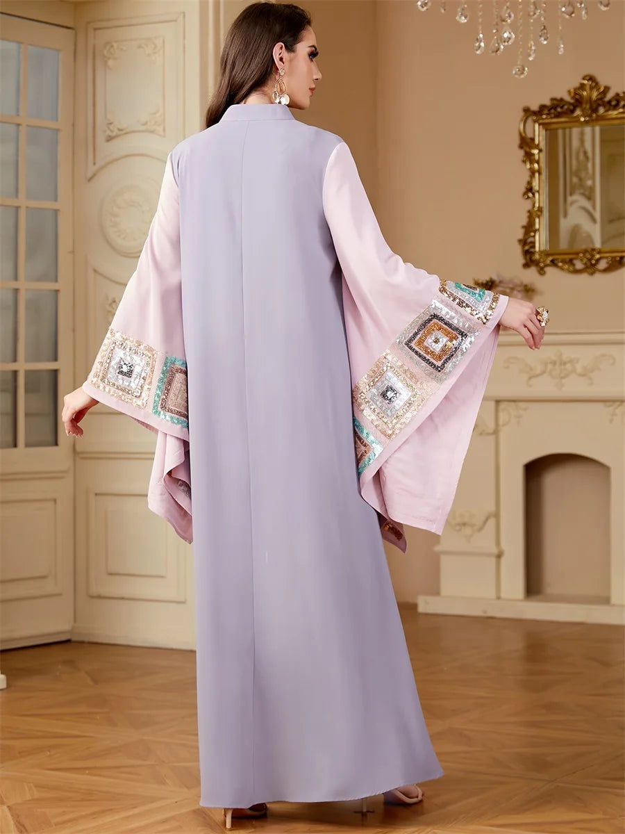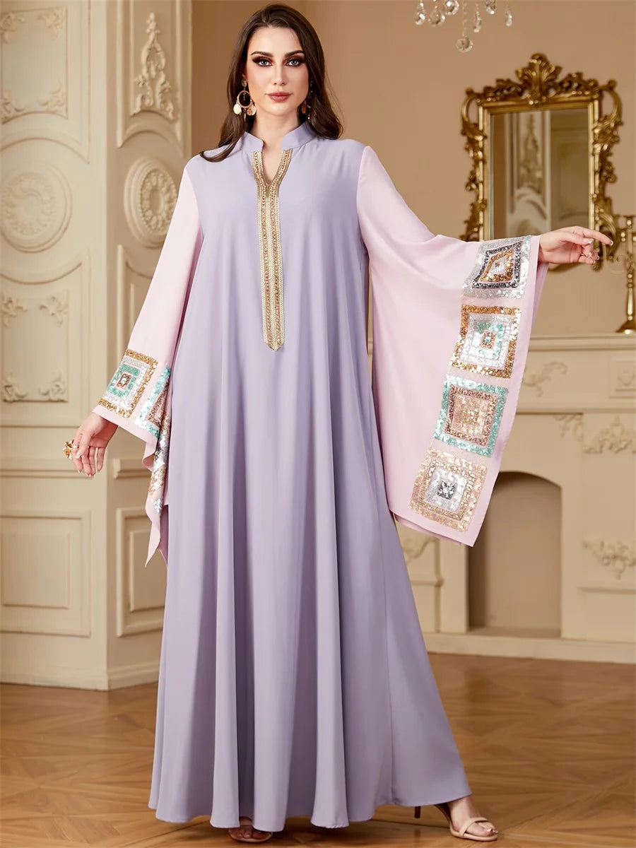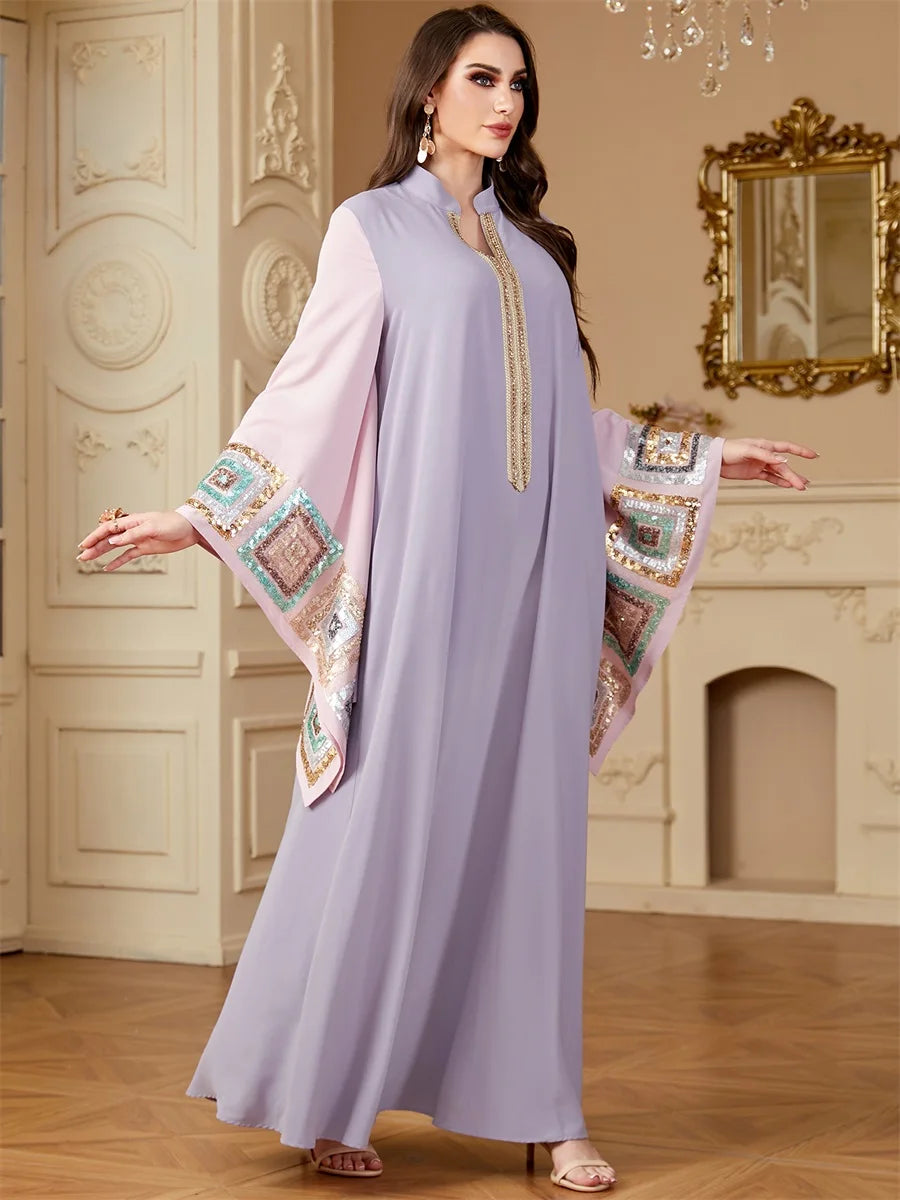 جلابية بنفسجية ناعمة بأكمام مطرزة ولمسة فنية فاخرة