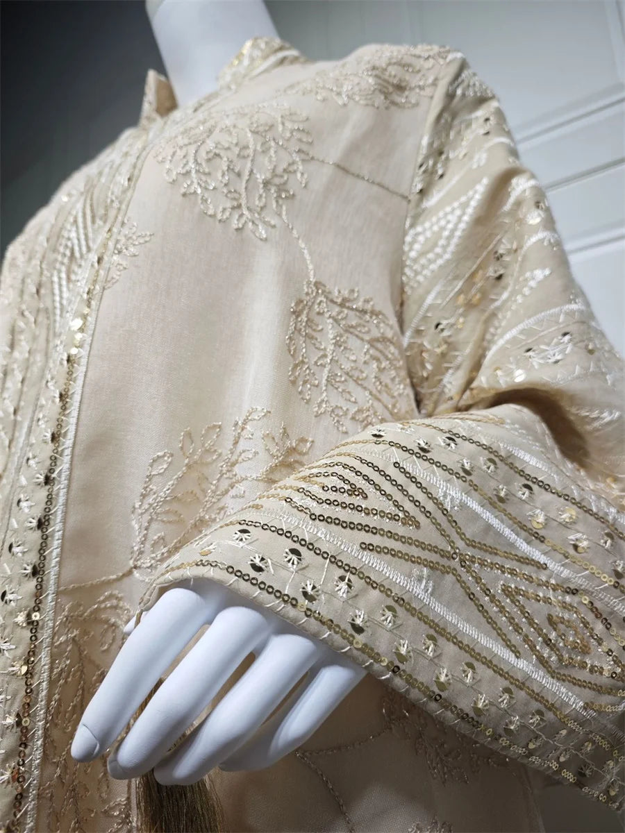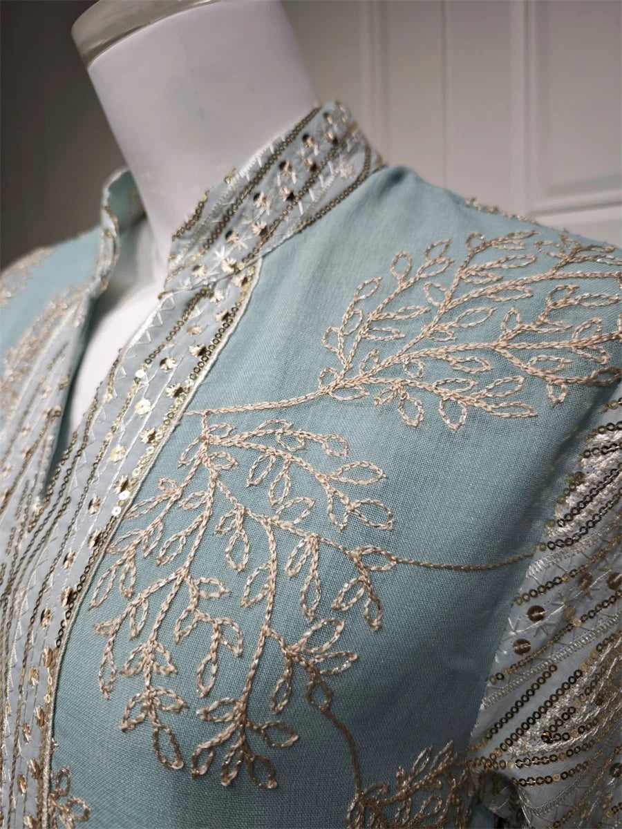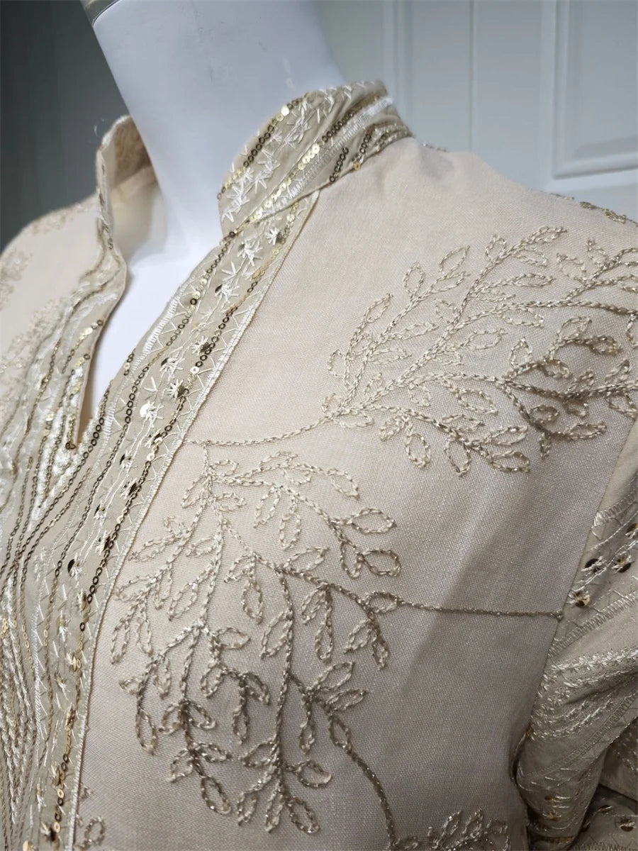 مزينة بتطريز يدوي فاخر يبرز جمال التصميم ويمنحه طابعًا تقليديًا أنيقًا.