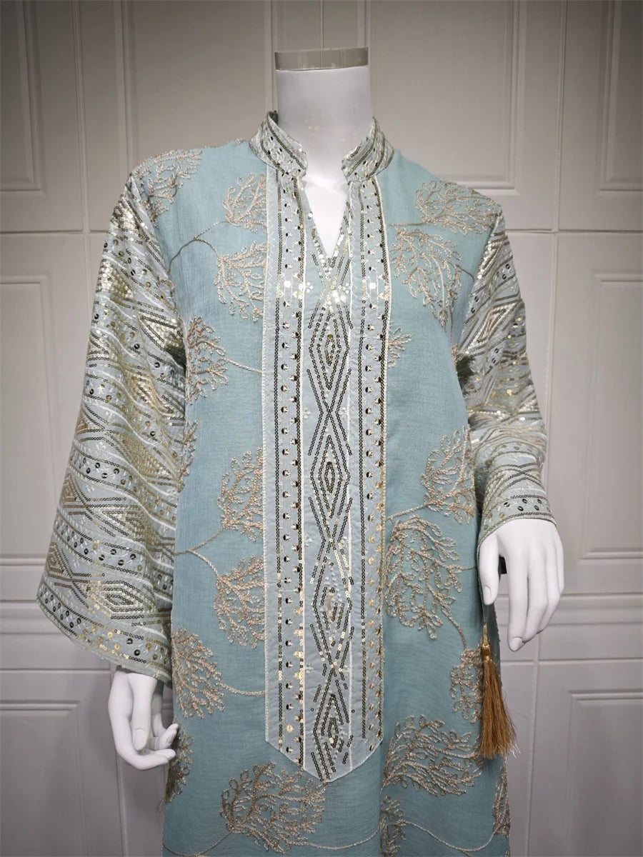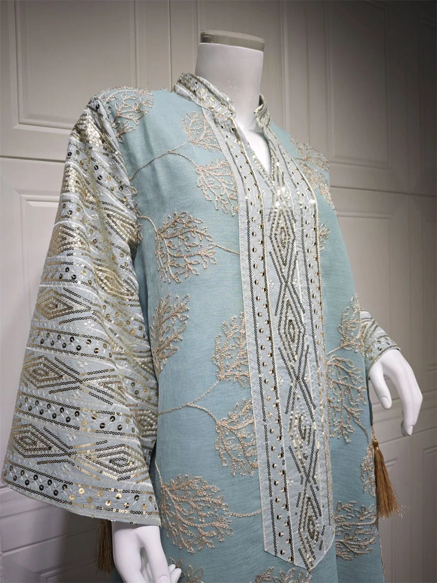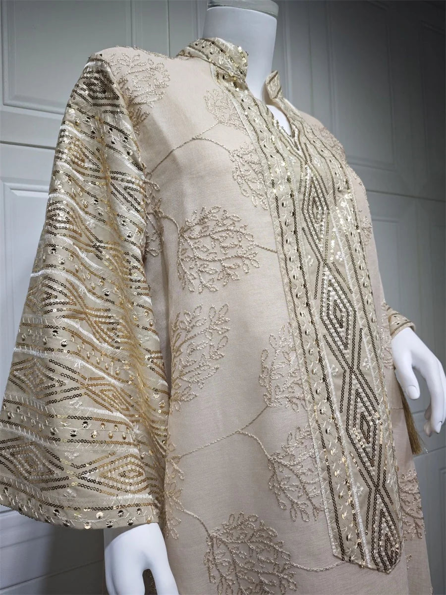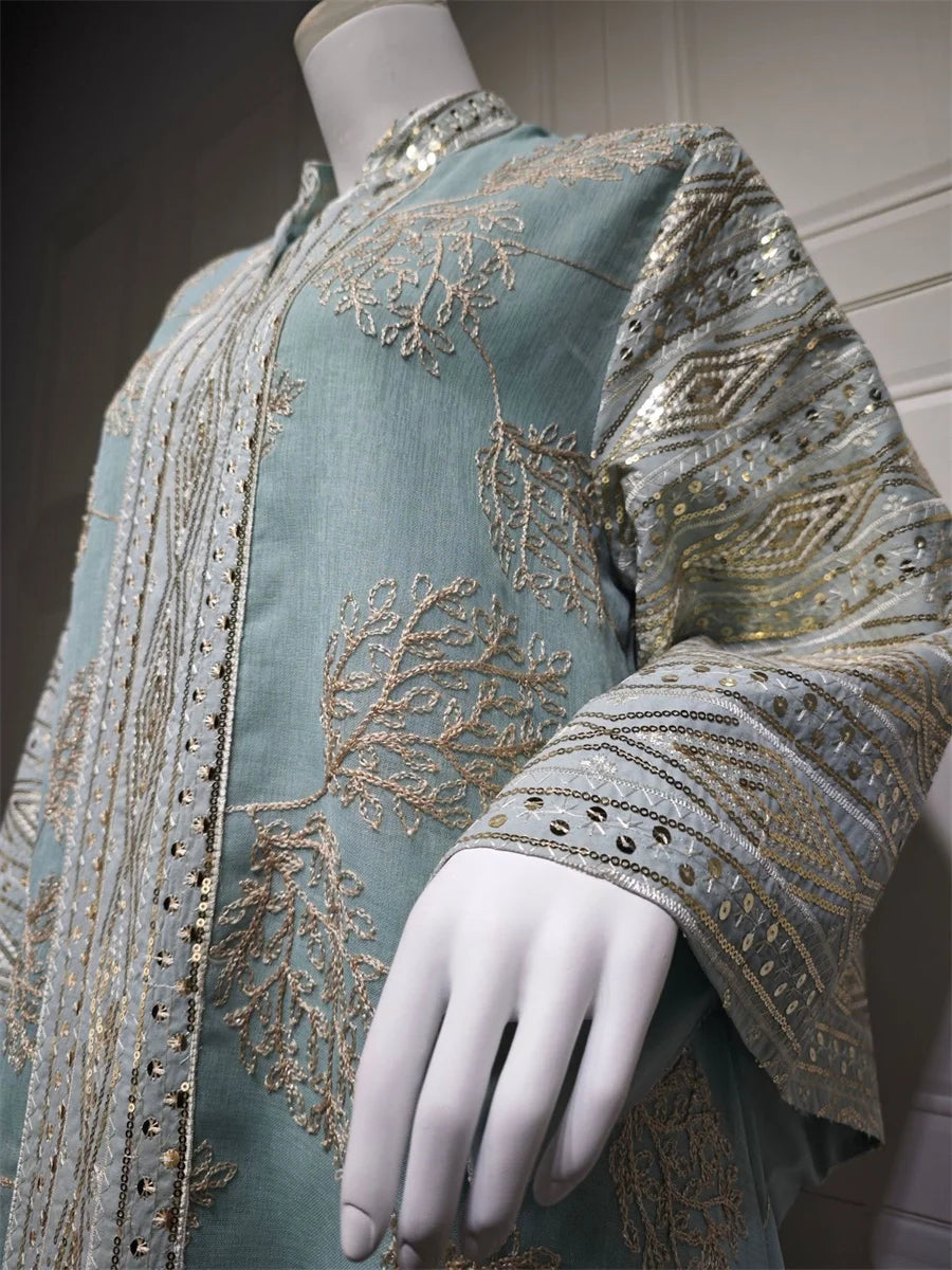 مزينة بتطريز يدوي فاخر يبرز جمال التصميم ويمنحه طابعًا تقليديًا أنيقًا.