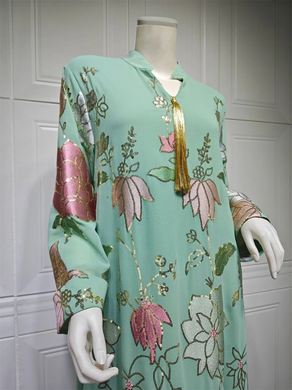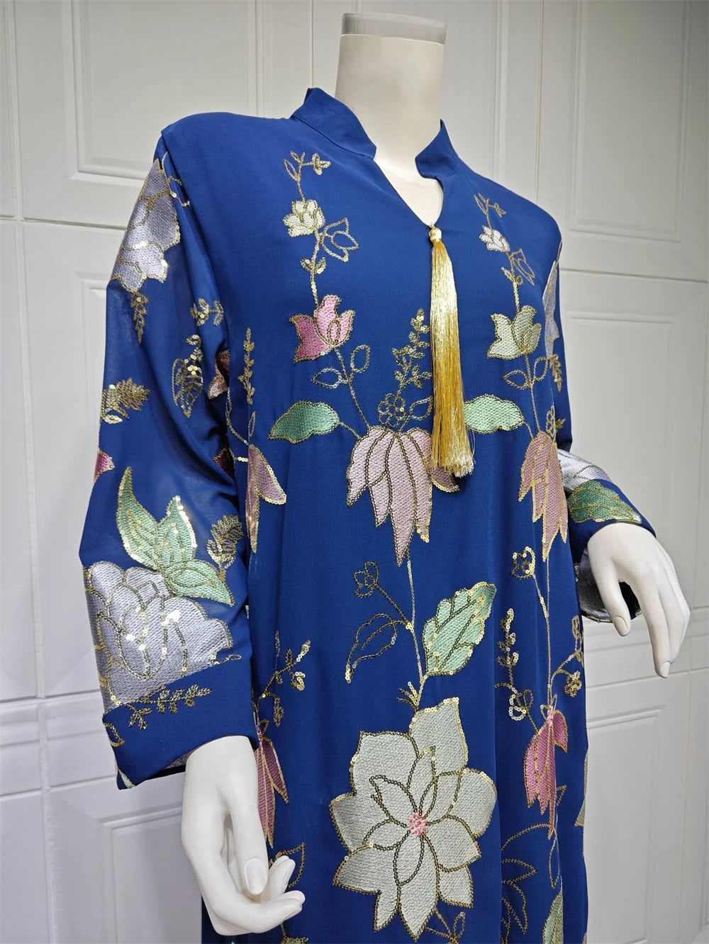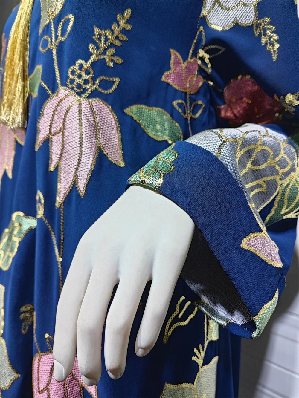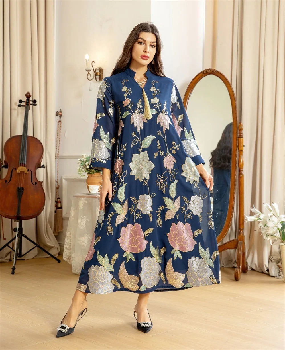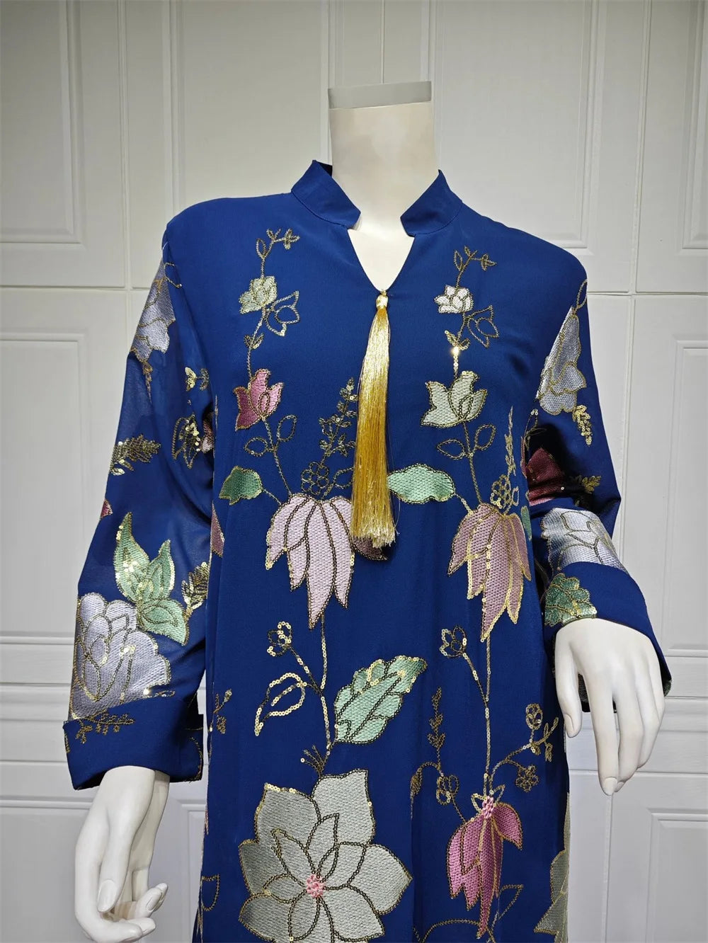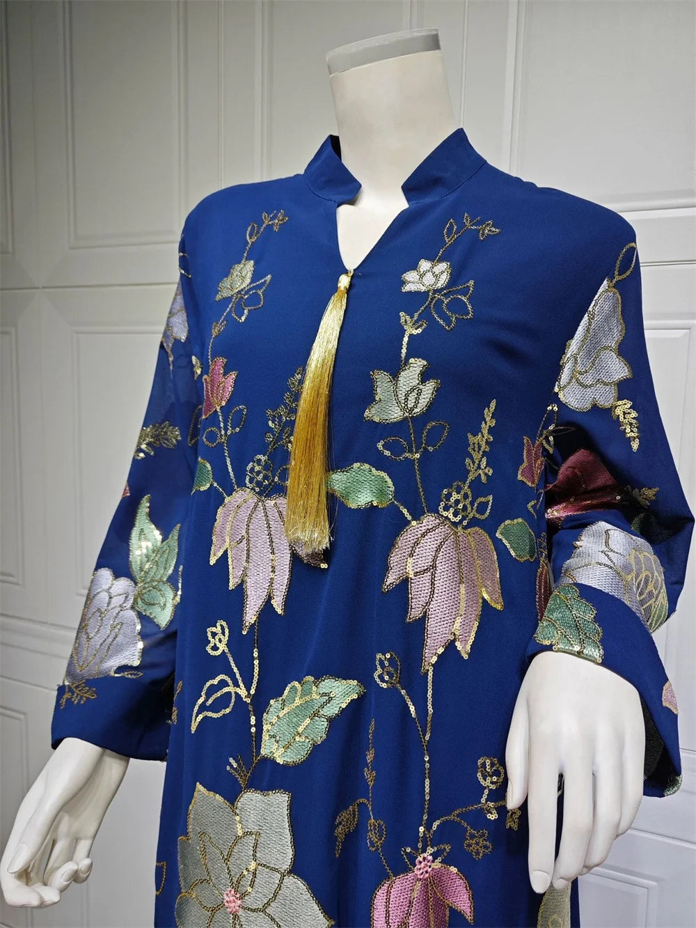 جلابية سوداء فاخرة مطرزة بالورود اللامعة