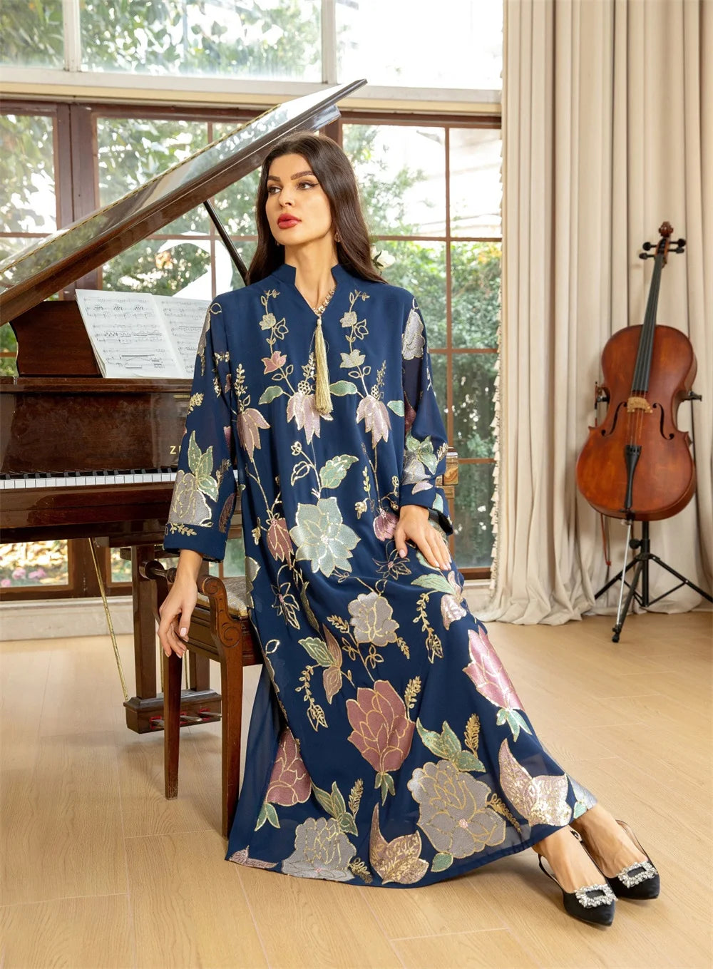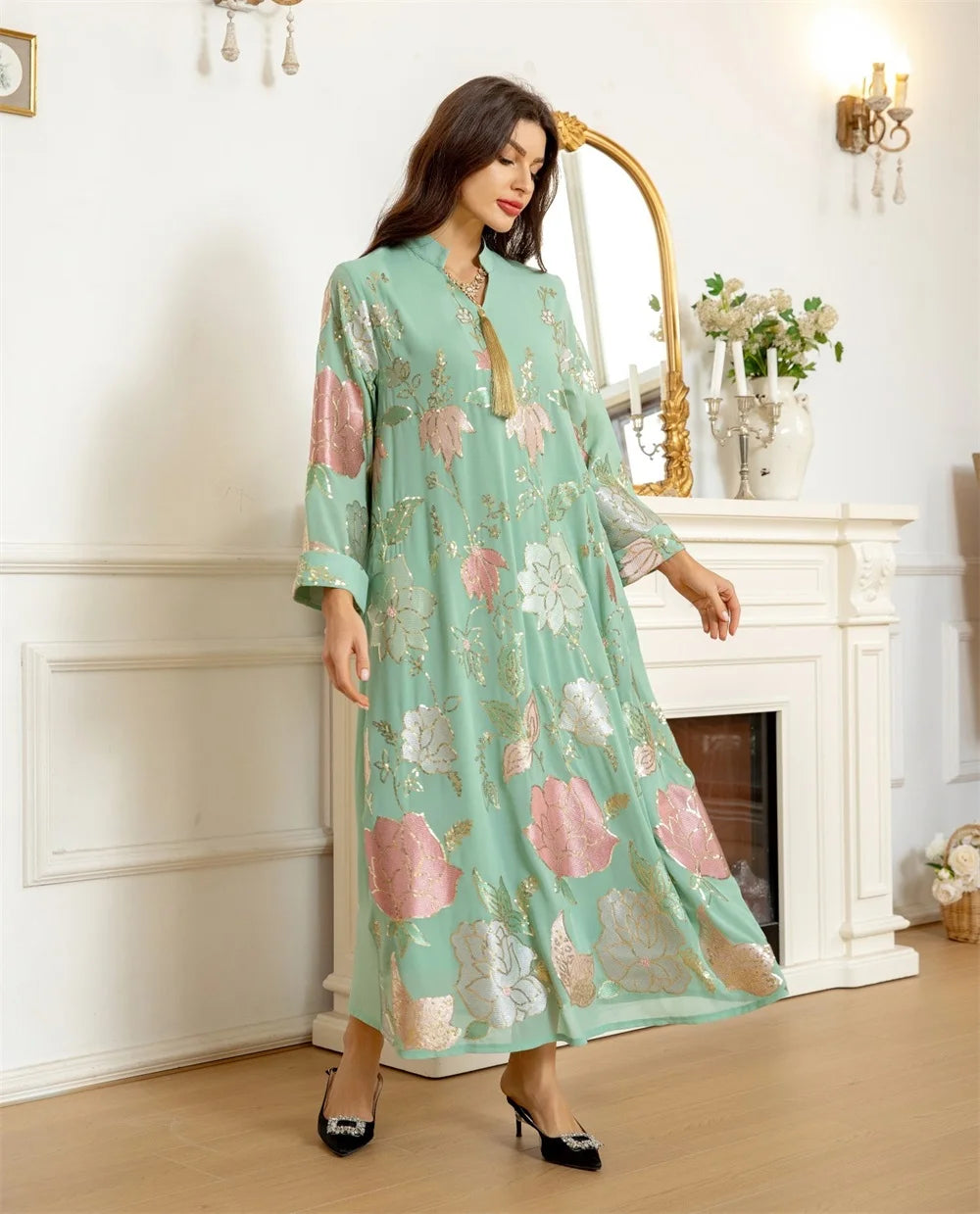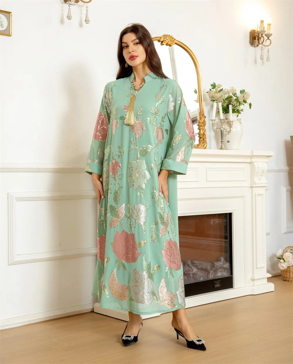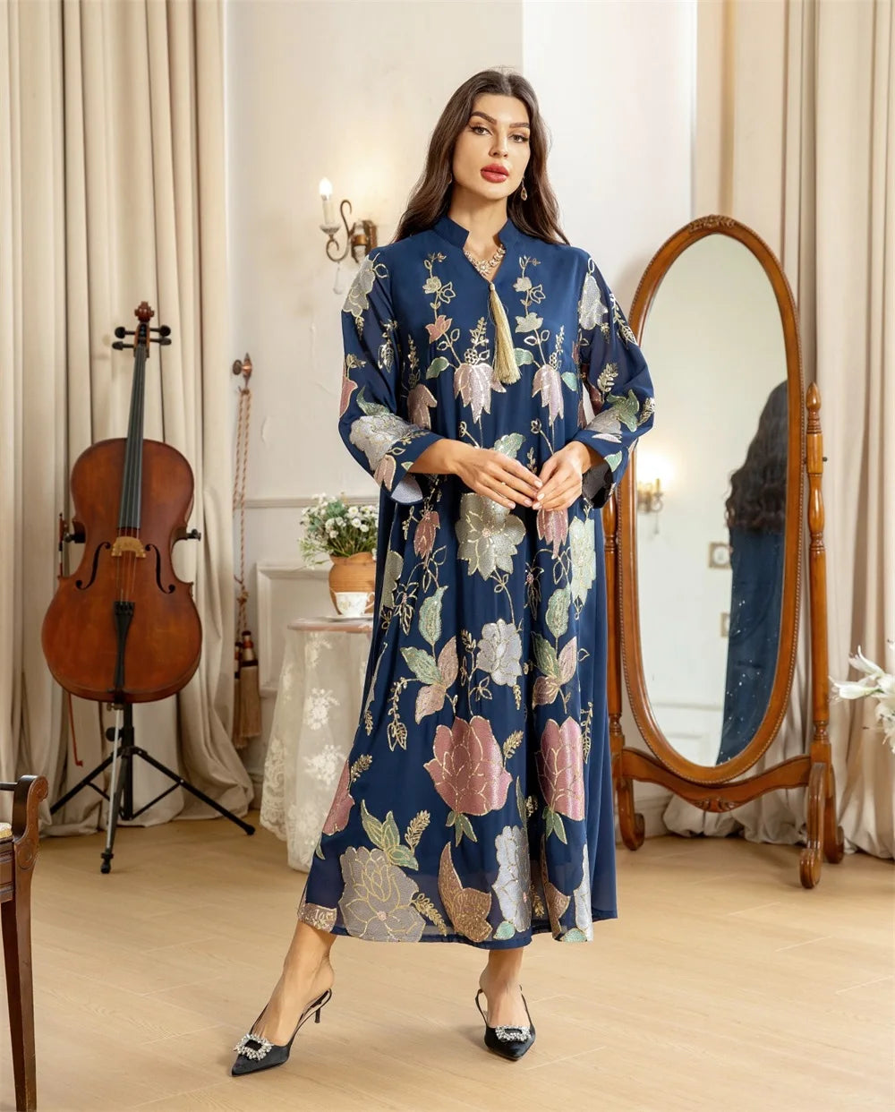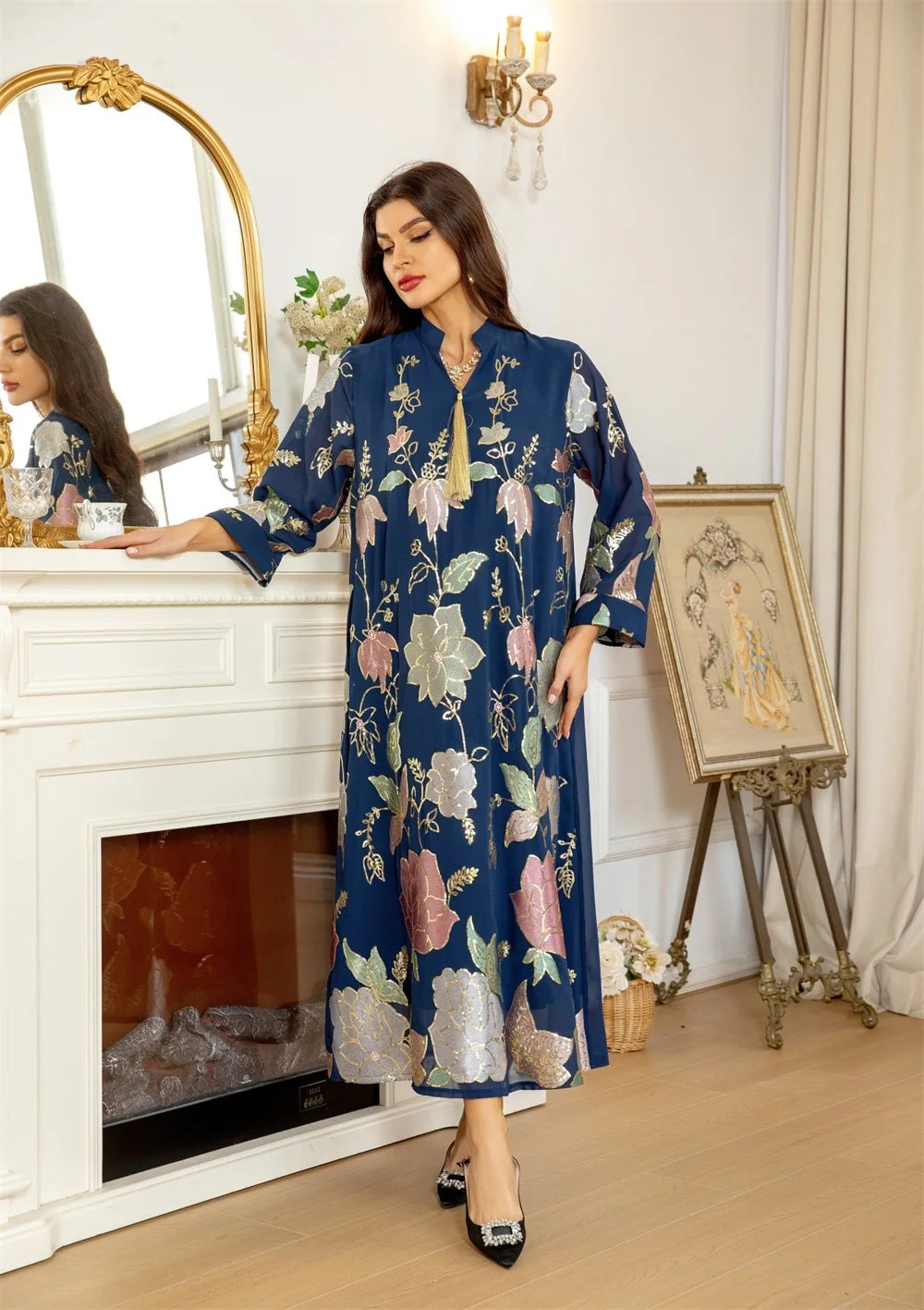 جلابية سوداء فاخرة مطرزة بالورود اللامعة