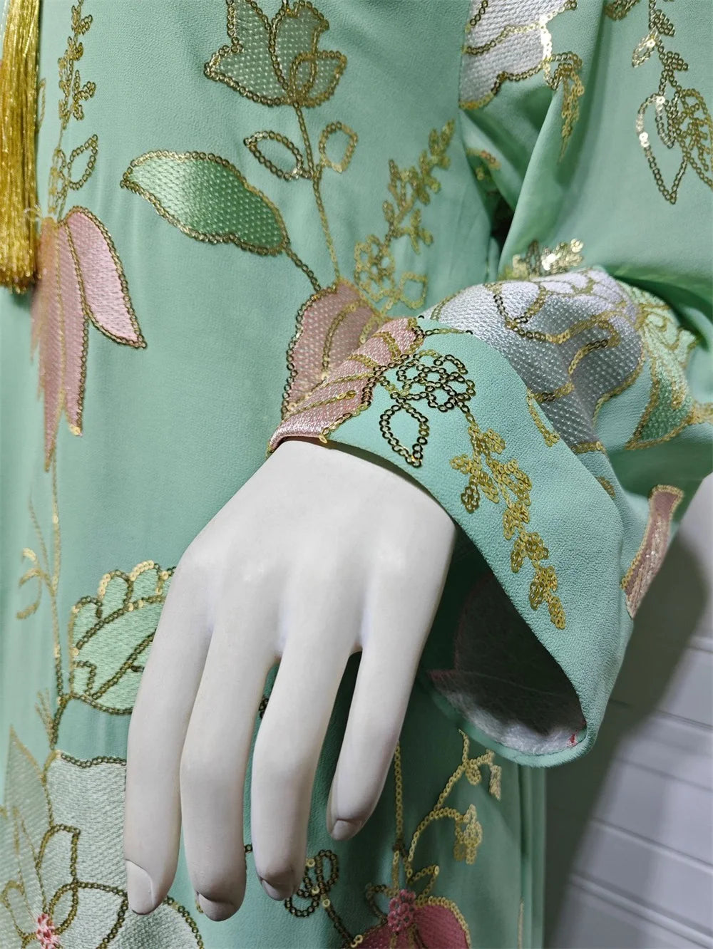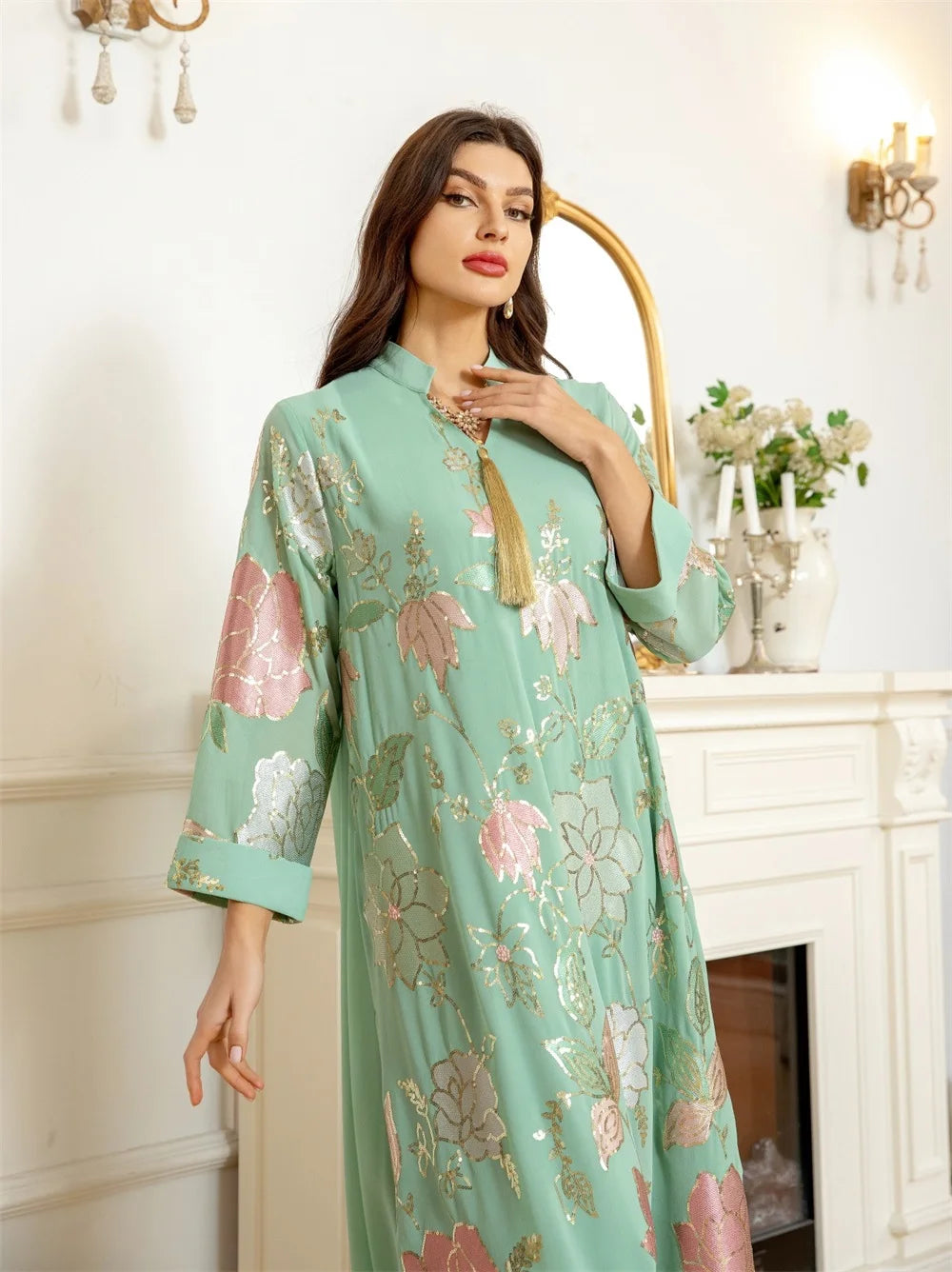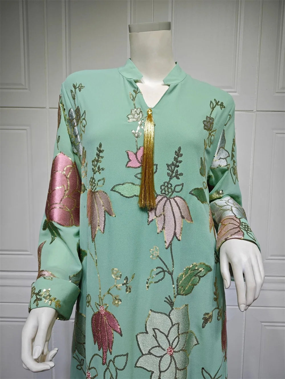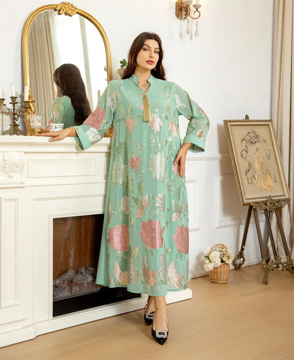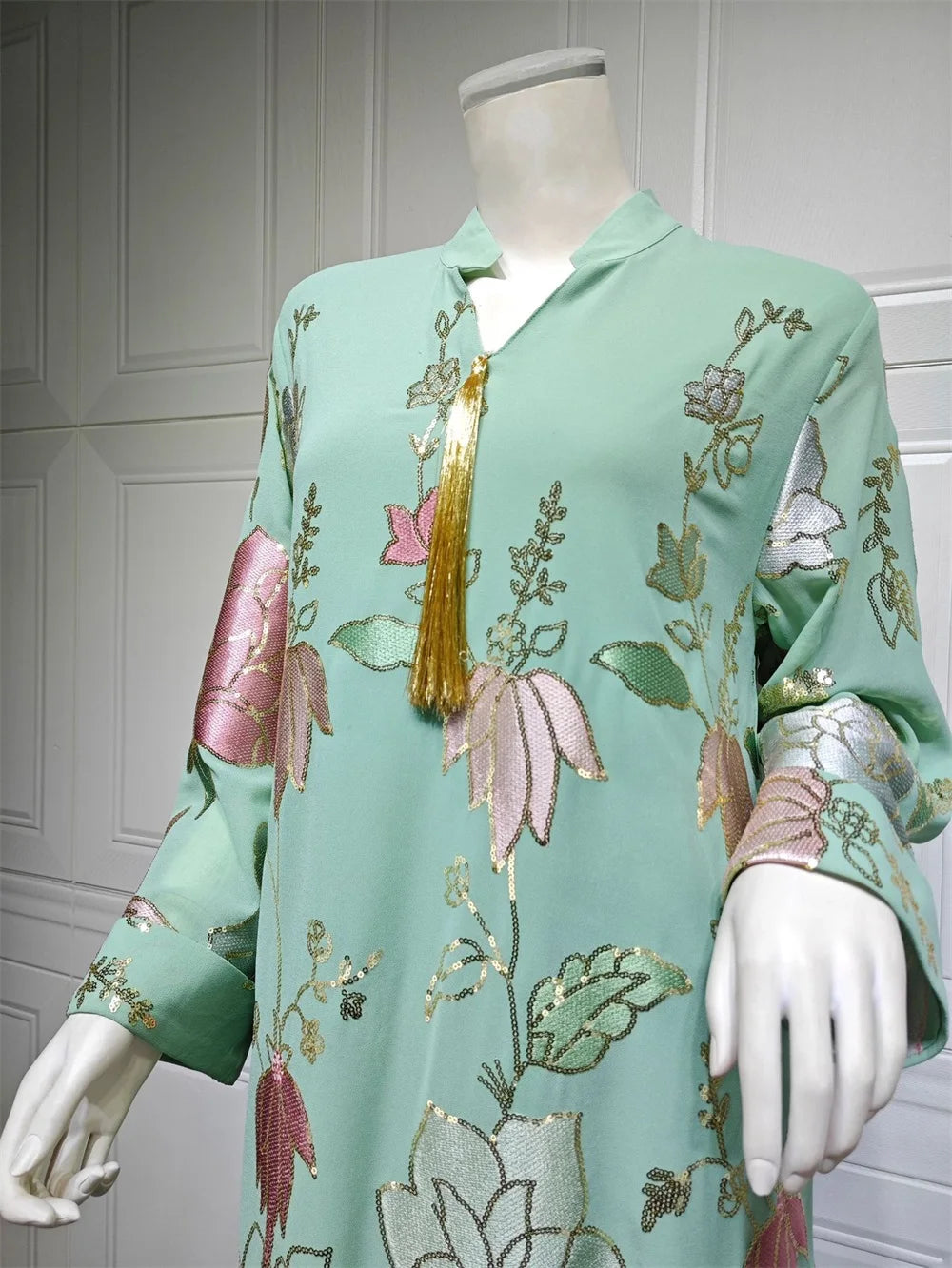 جلابية سوداء فاخرة مطرزة بالورود اللامعة