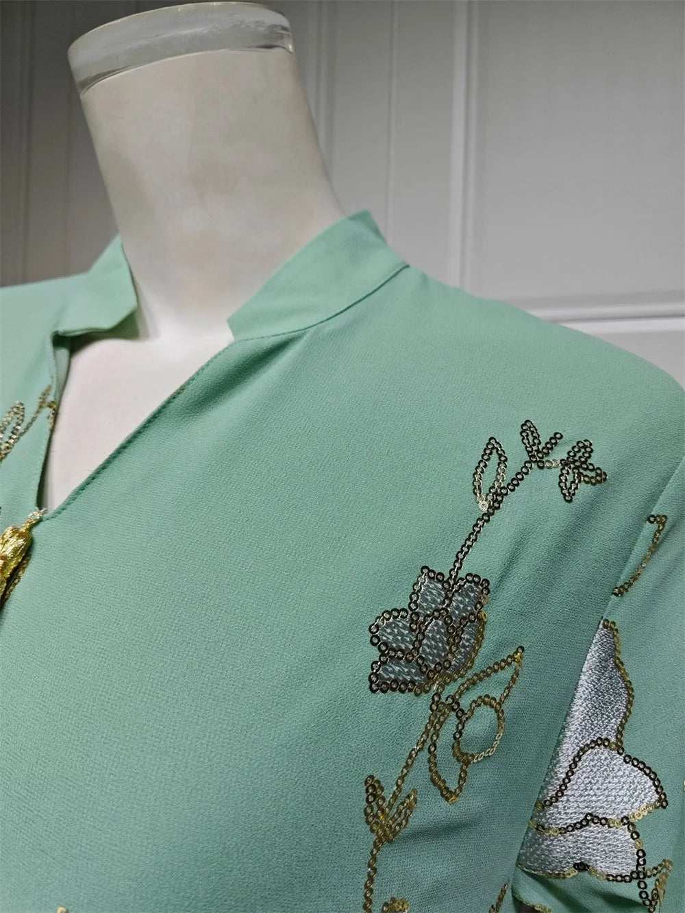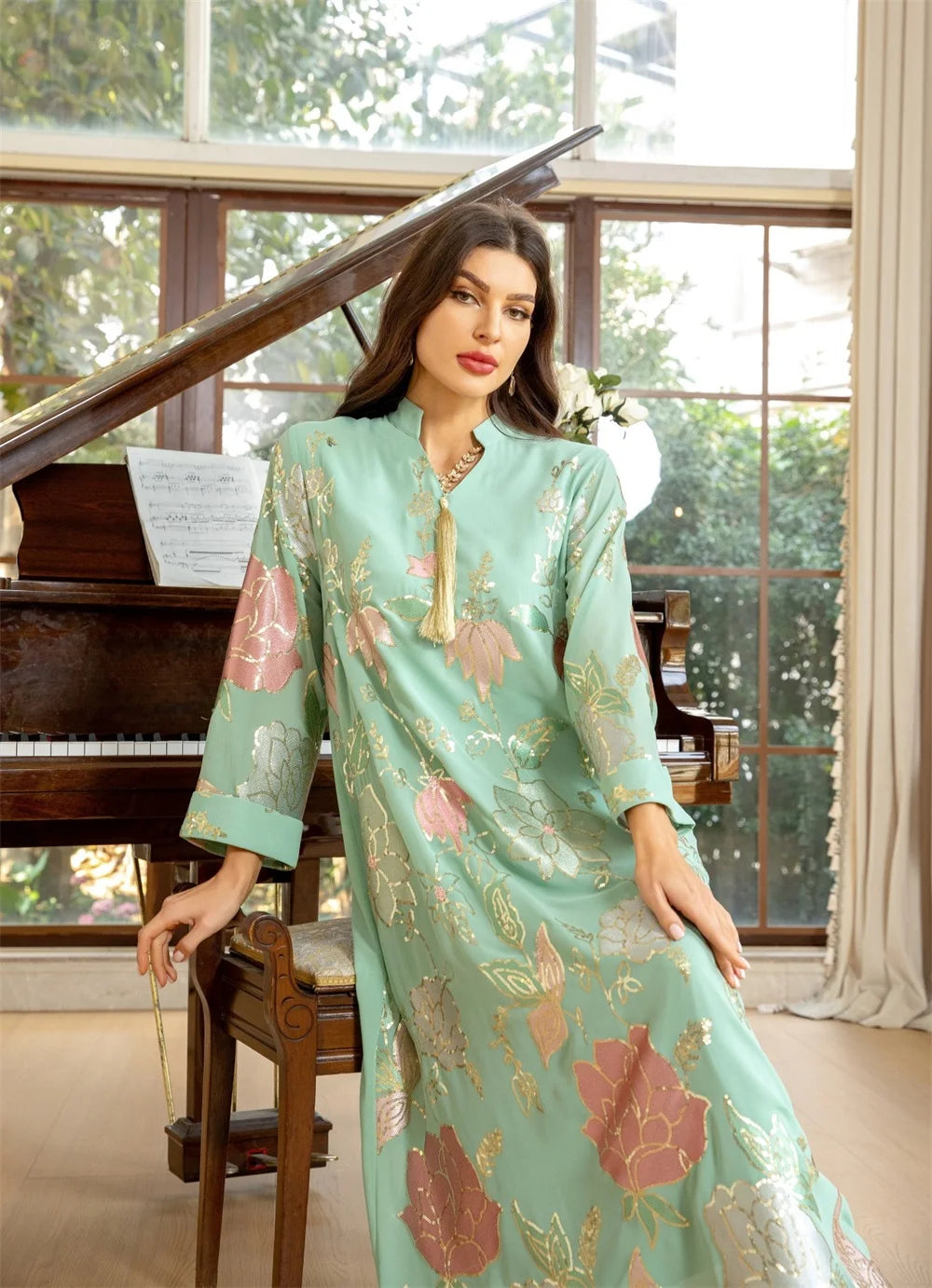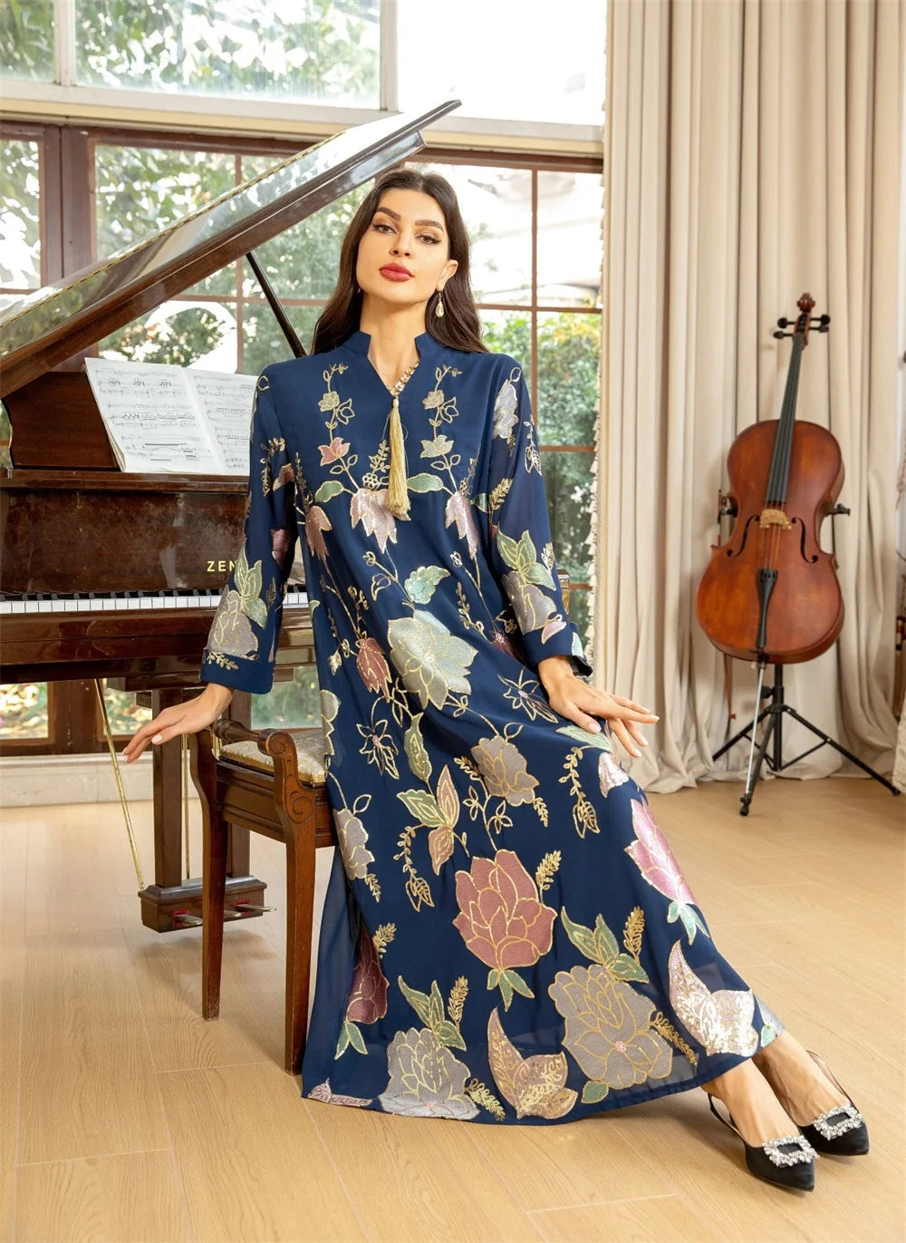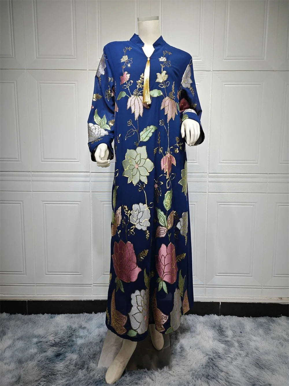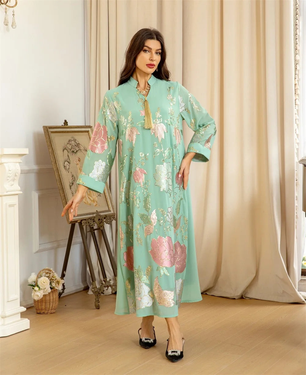 جلابية سوداء فاخرة مطرزة بالورود اللامعة