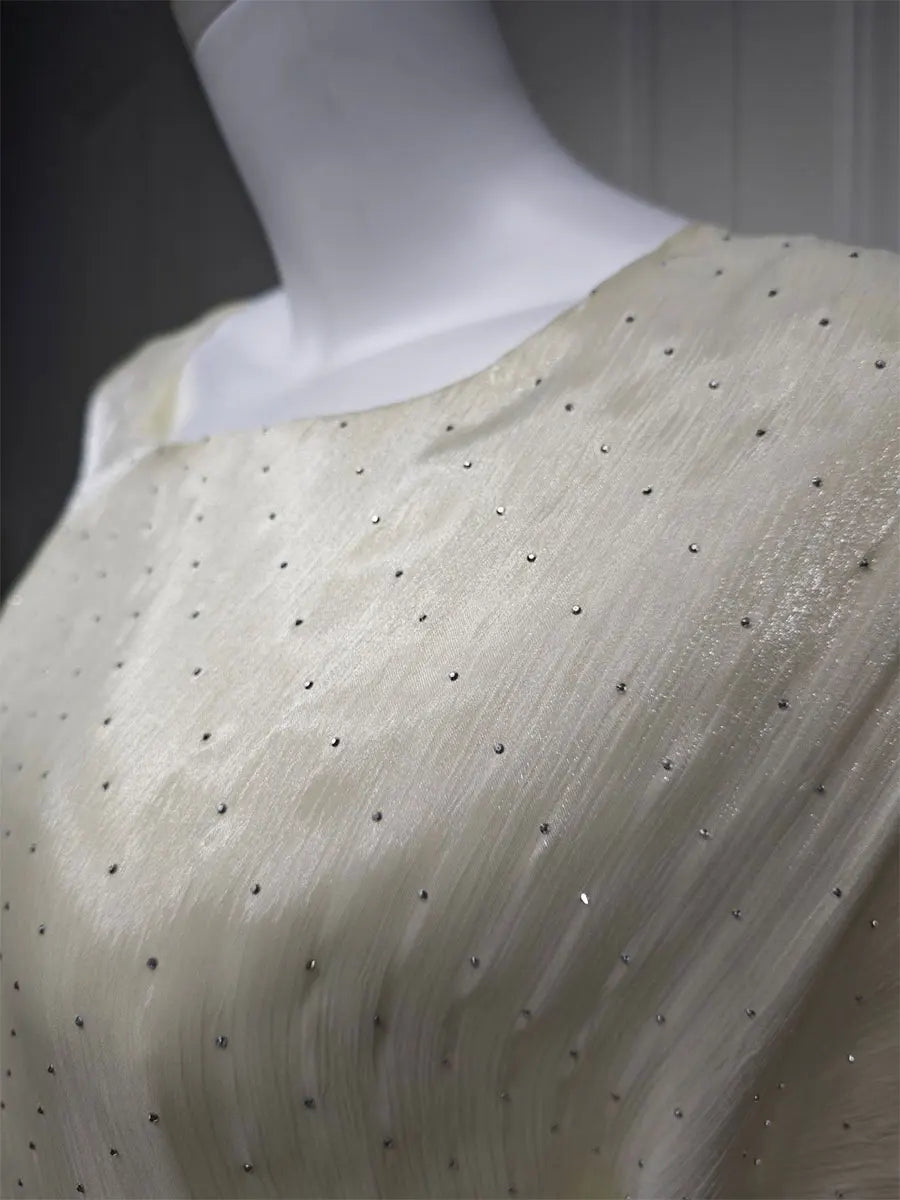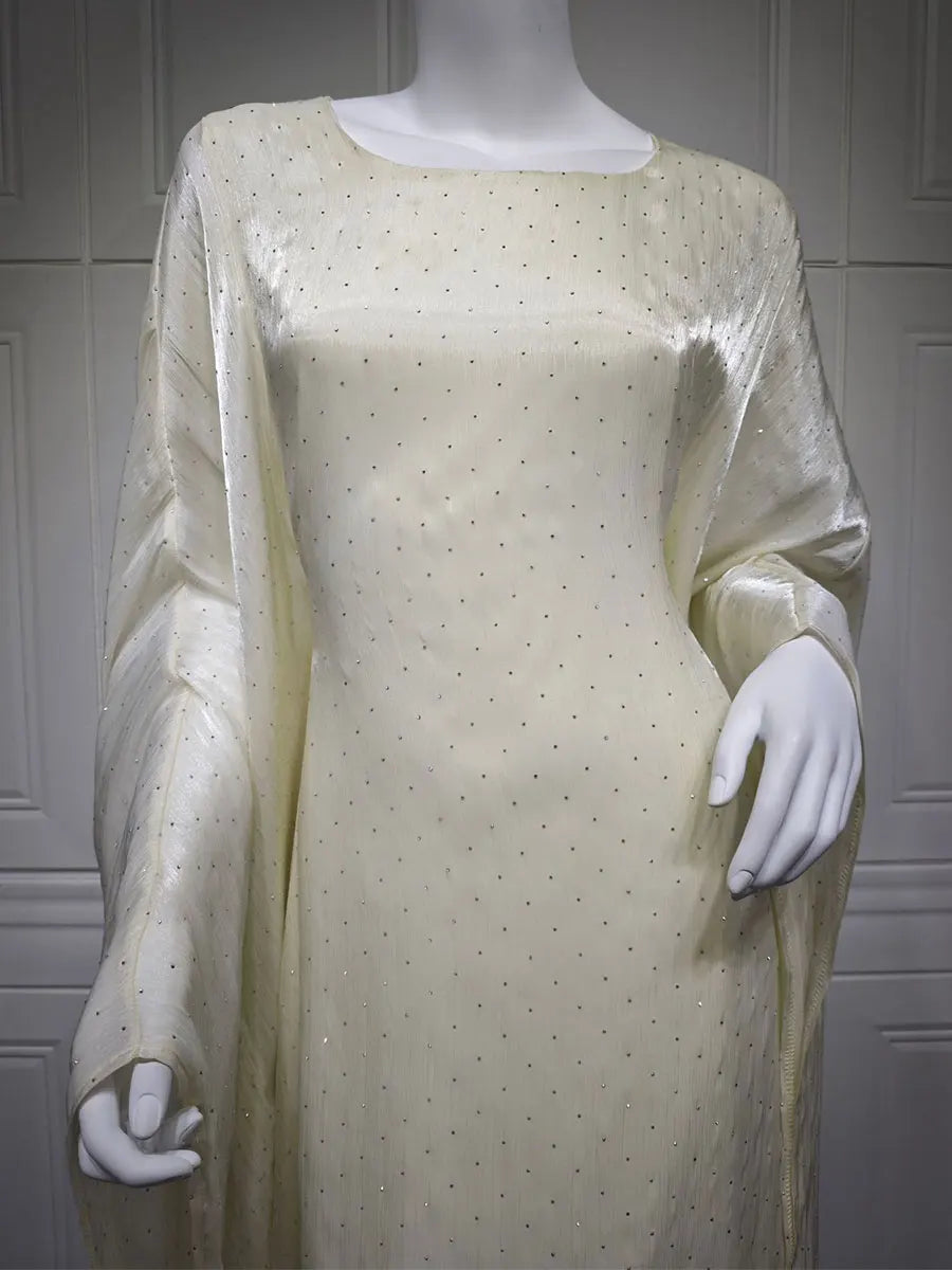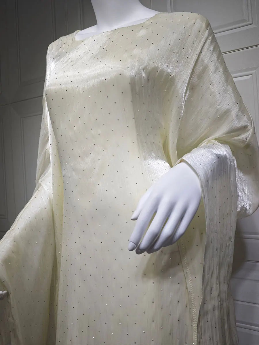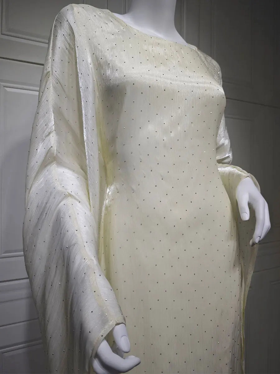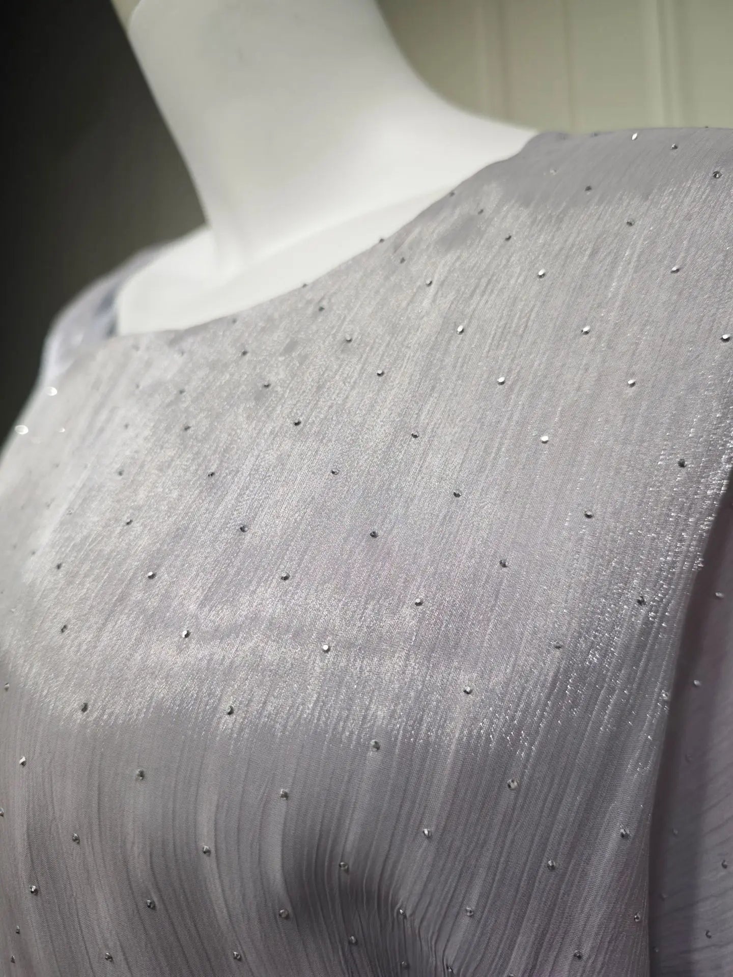 تفاصيل ناعمة بنقاط لامعة على القماش، تضفي بريقاً أنيقاً ولمسة أنثوية جذابة دون مبالغة.