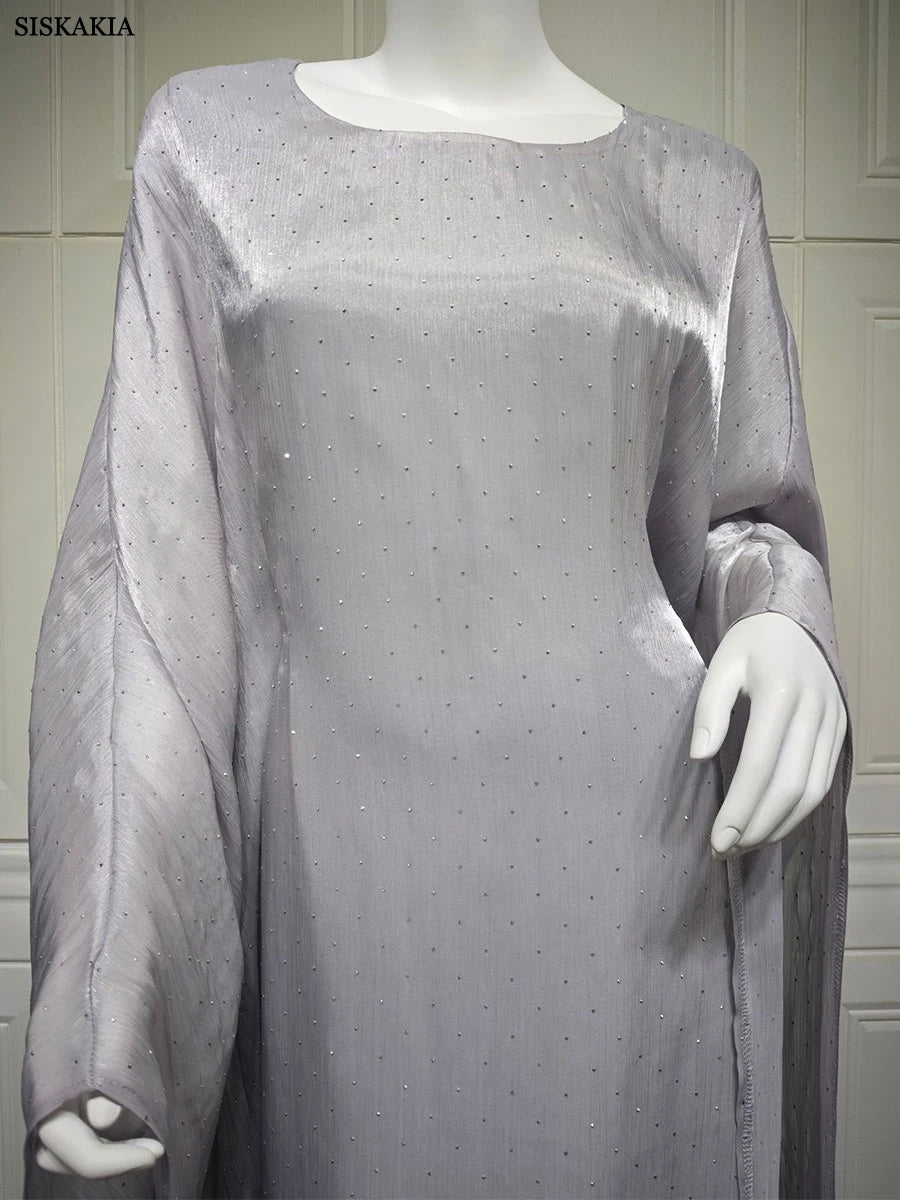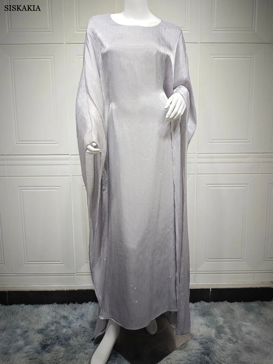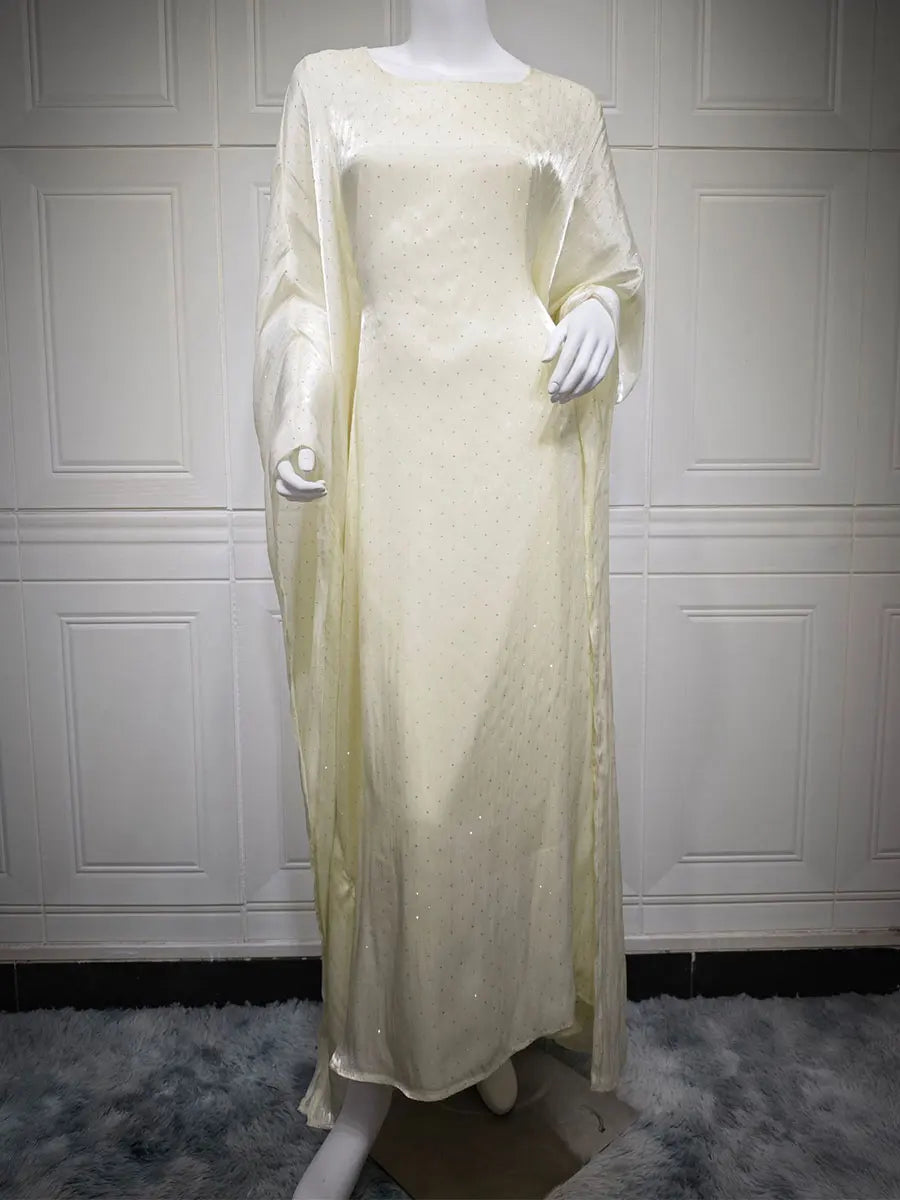 جلابيات فاخرة بتصميم ملكي ناعم ينبض بالأناقة والرقي. تتميز بقصة فضفاضة تنسدل بانسيابية ساحرة، مع قماش شفاف مزدان بنقاط لامعة تضيف لمسة من الجاذبية الهادئة. الألوان الراقية – الرمادي الهادئ والأبيض النقي – تمنحك حضوراً أنثوياً متفرداً في كل مناسبة.