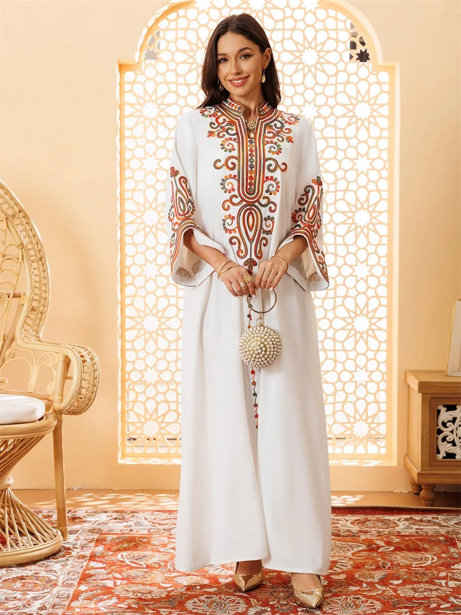 جلابيه بيضاء أنيقة بتطريز ملون يخطف الأنظار