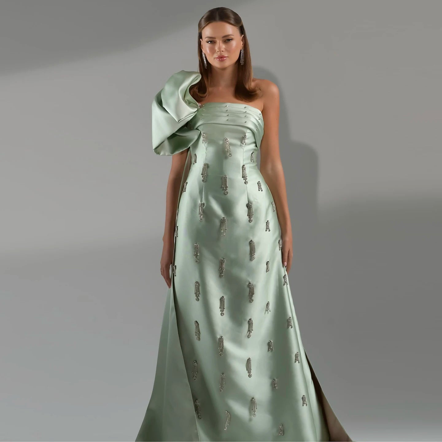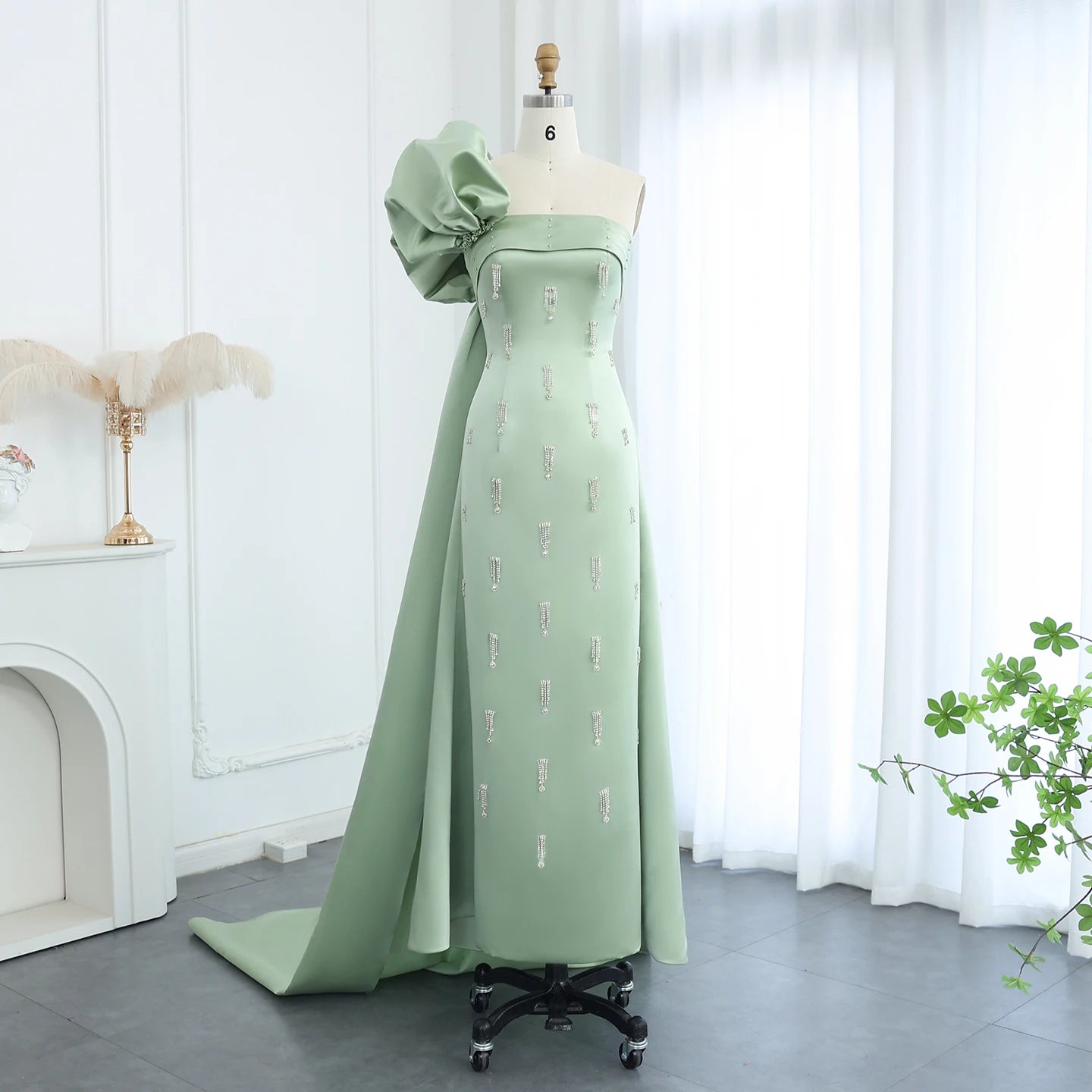 تميّزي بإطلالة راقية وفريدة مع هذا الفستان الساحر المصنوع من قماش الساتان الفاخر، والمصمم بتفاصيل هندسية أنيقة تبرز أنوثتك بكل فخامة. يتميز الفستان بقصة ضيقة طويلة تنسدل بنعومة على القوام، مع كتف واحد مزين بوردة ضخمة تنساب منها طبقة خلفية تضيف طابعًا ملكيًا يخطف الأنظار.