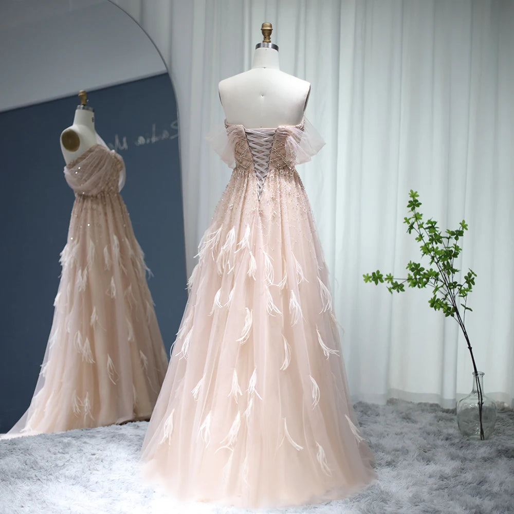- تول ناعم مزدان بريش خفيف لمظهر أنثوي راقٍ