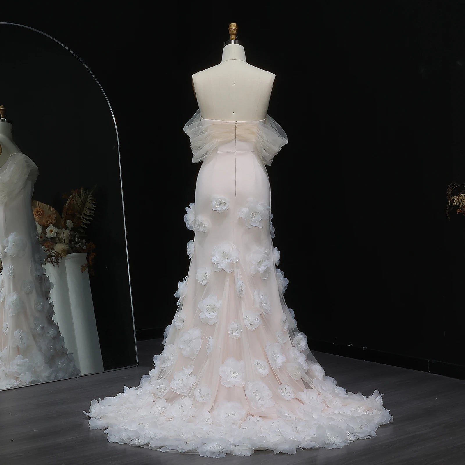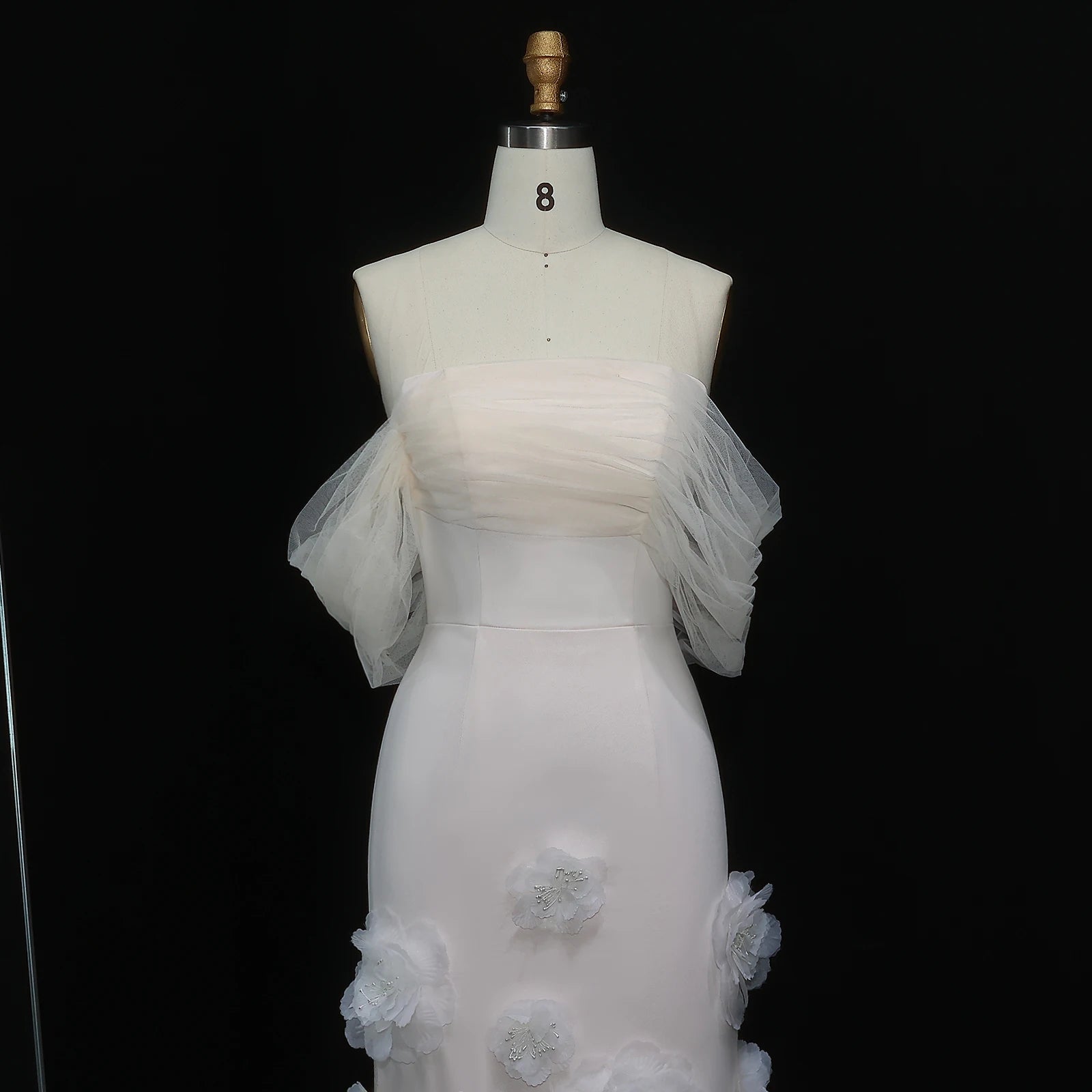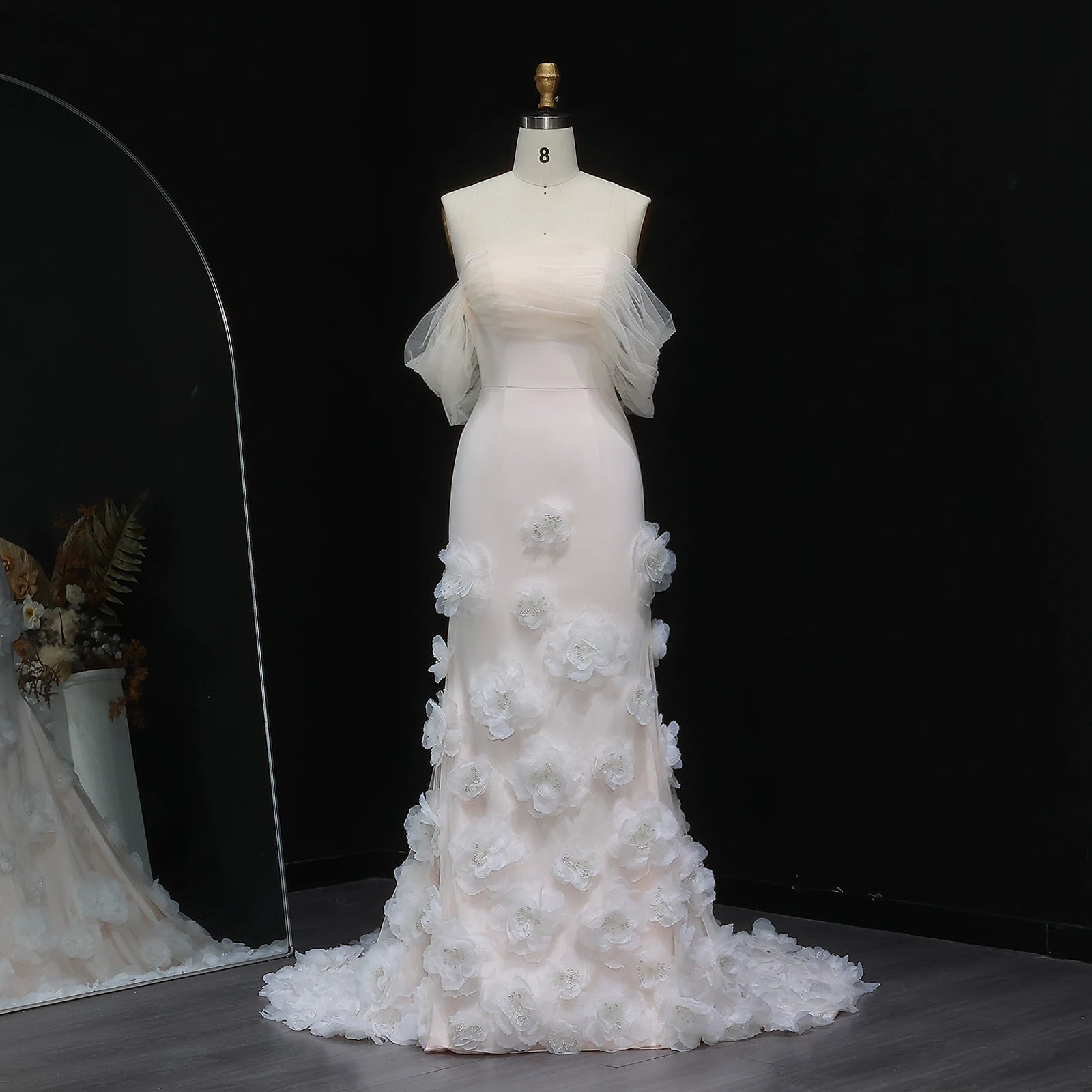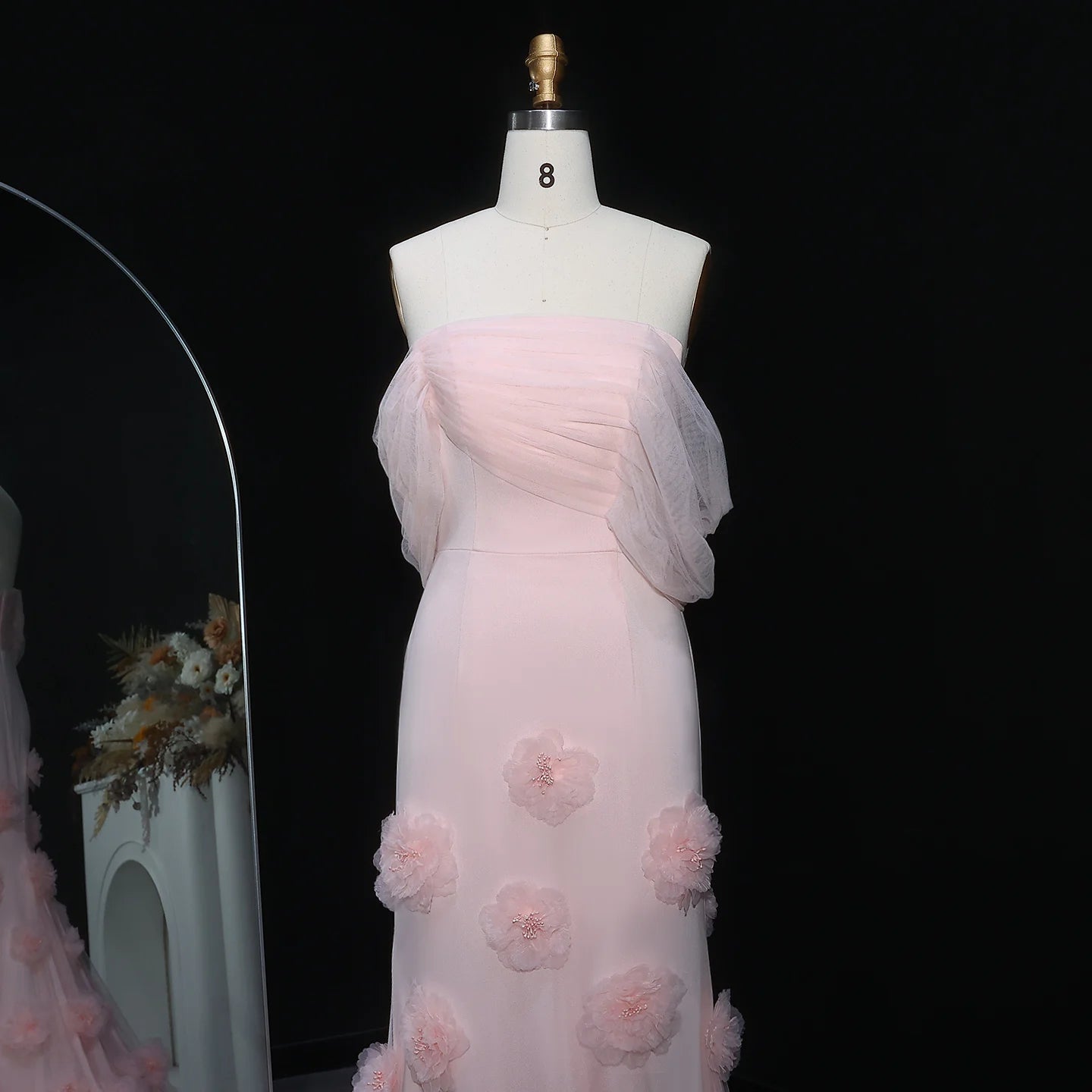 فستان "زهرة الربيع" بكتف مكشوف وتزيين بورود ناعمة