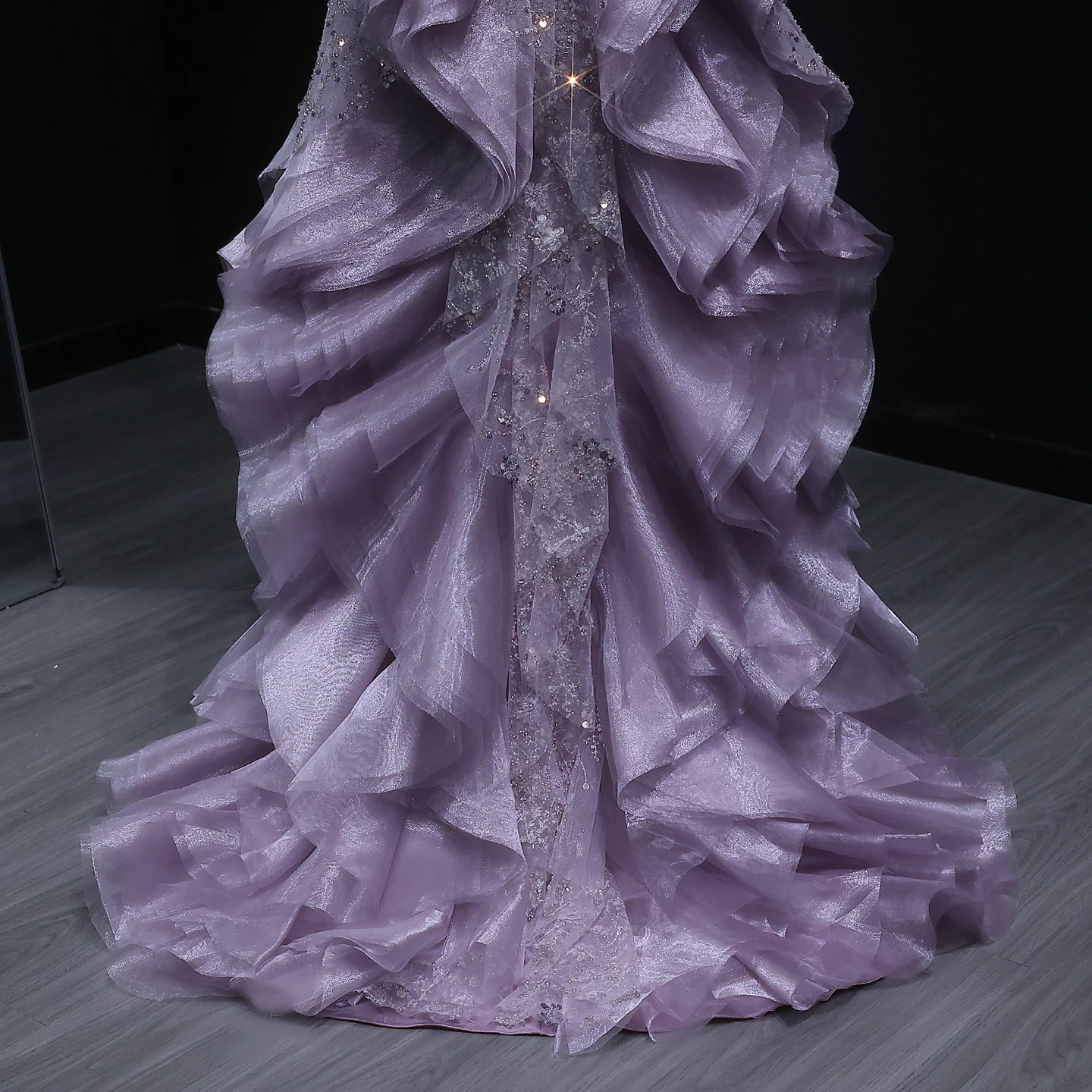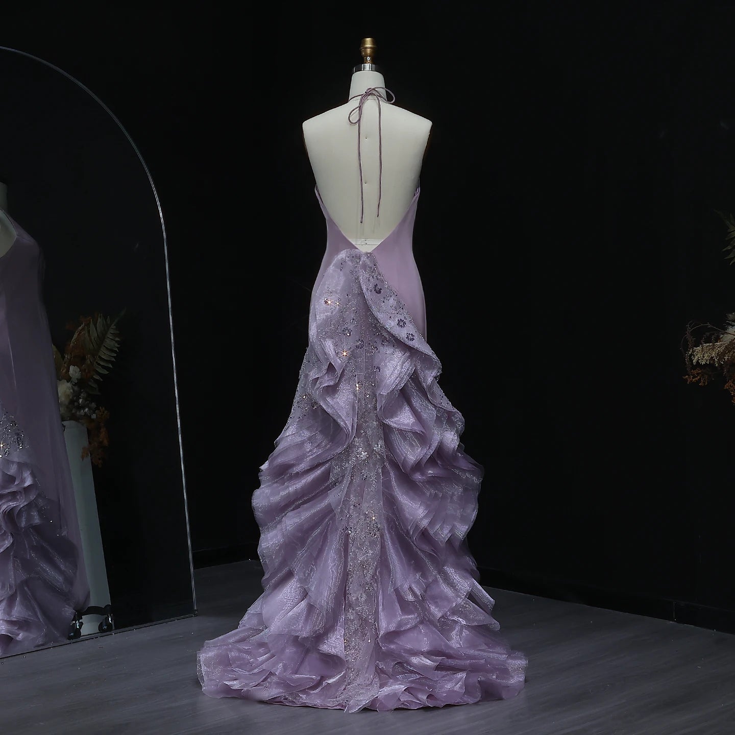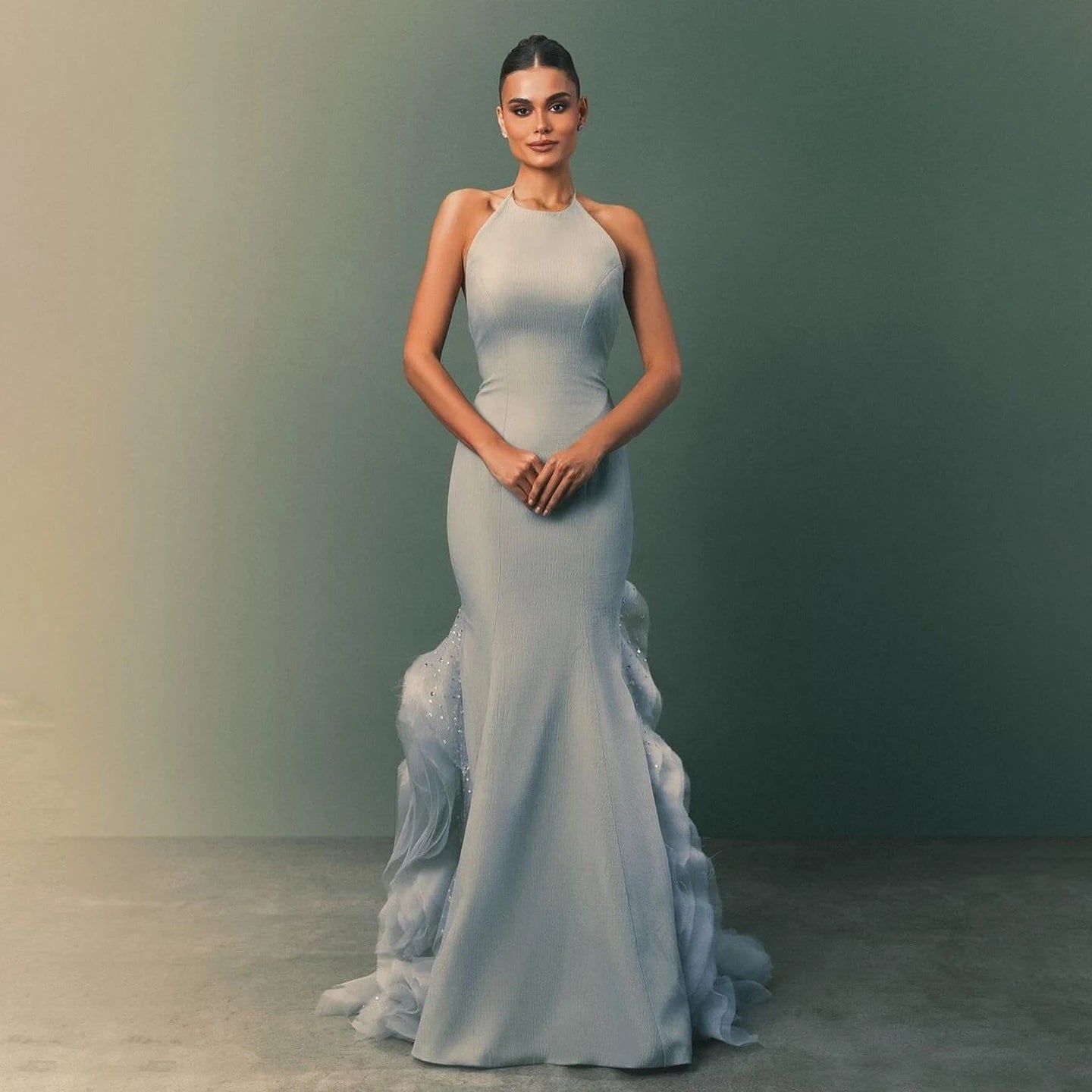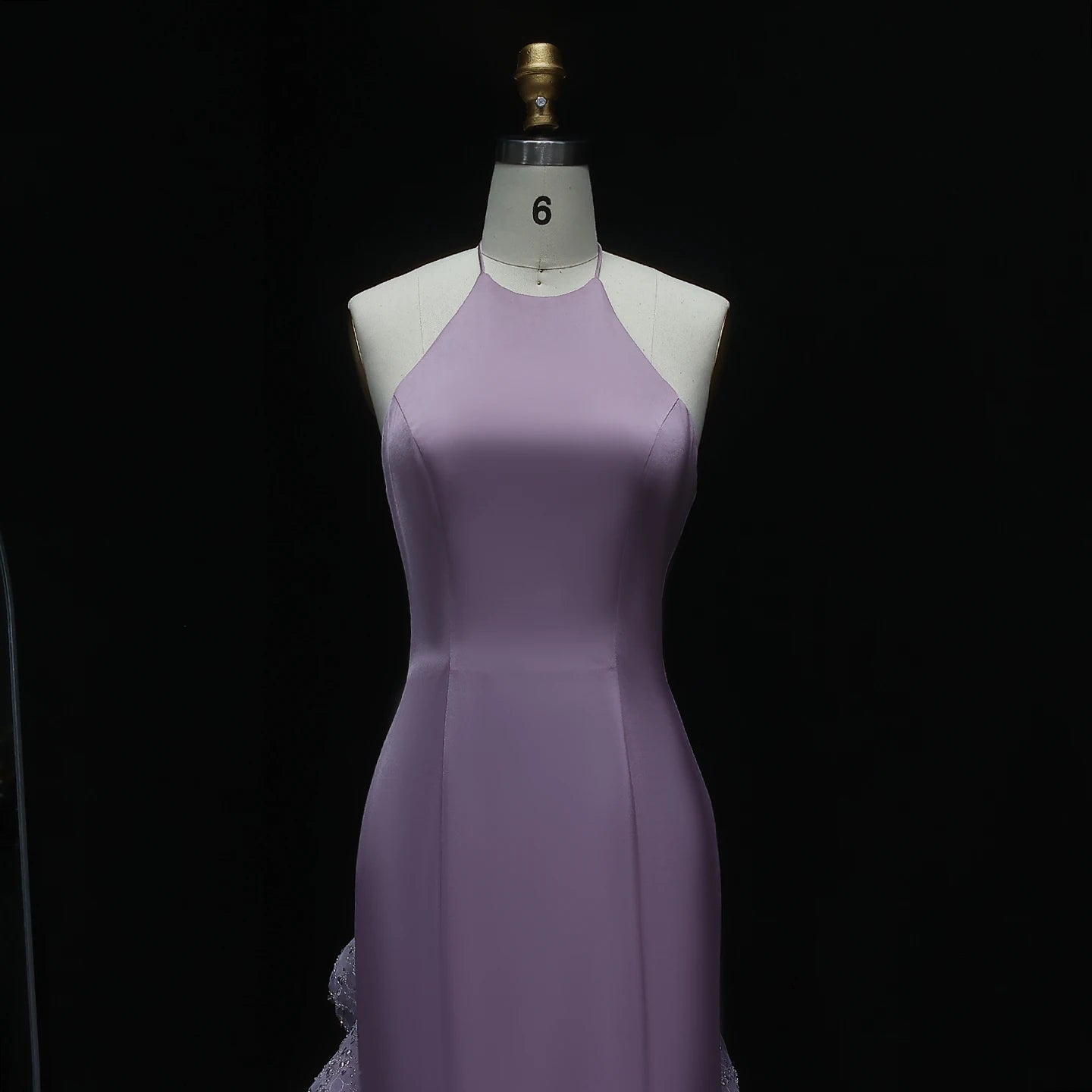 استمتعي بإطلالة ساحرة تأسر الأنظار مع هذا الفستان الفاخر المصمم بقصة ضيّقة تبرز القوام بأسلوب أنثوي راقٍ، يتسع تدريجيًا عند الأسفل بتصميم مستوحى من ذيل الحورية. يتميز بتفاصيل ناعمة وراقية على الجانبين من التول المزدان بالكريستال اللامع، مما يضفي لمسة من الفخامة والرقي. يأتي بقصة بدون أكمام وياقة عالية أنيقة تعزز جمال الرقبة والكتفين.