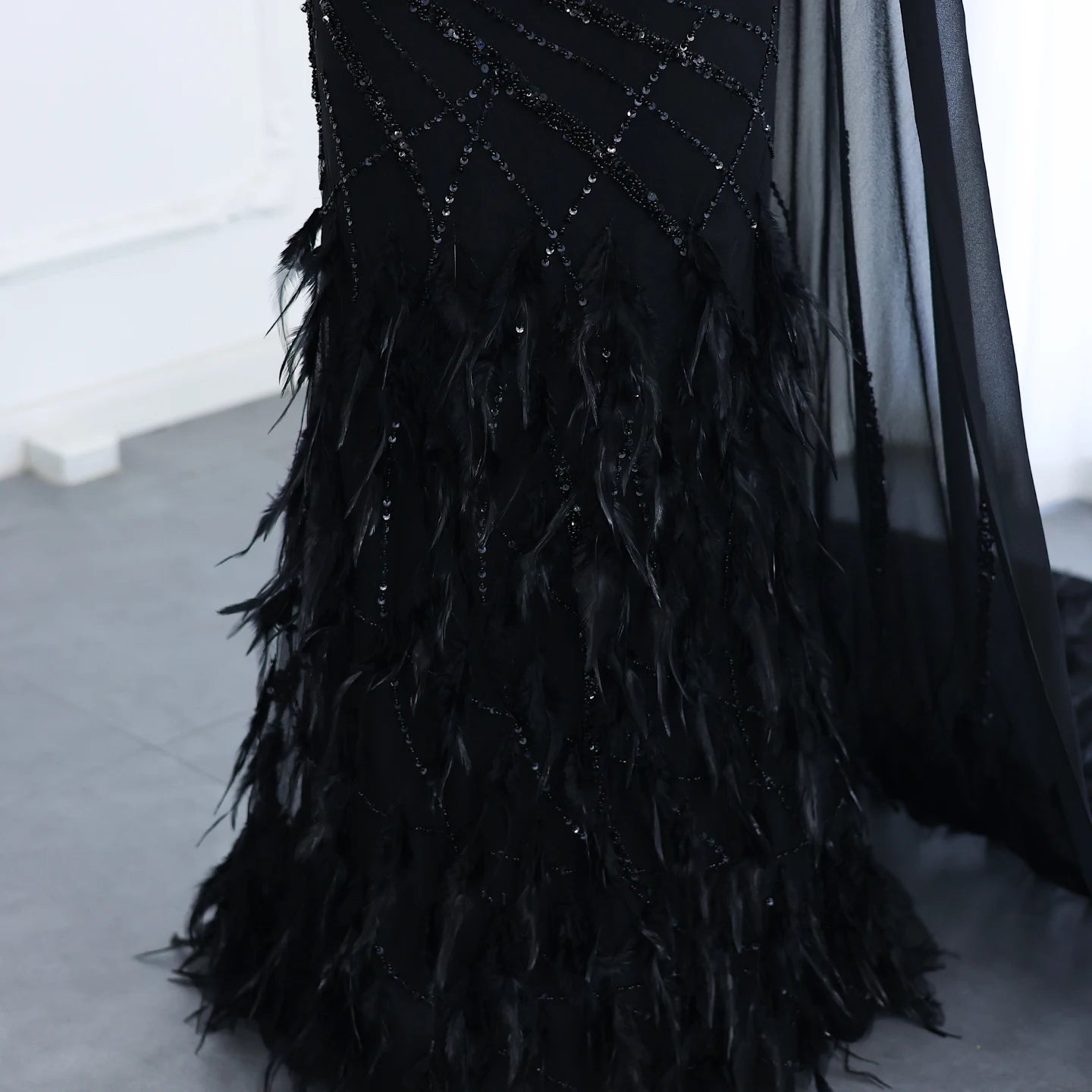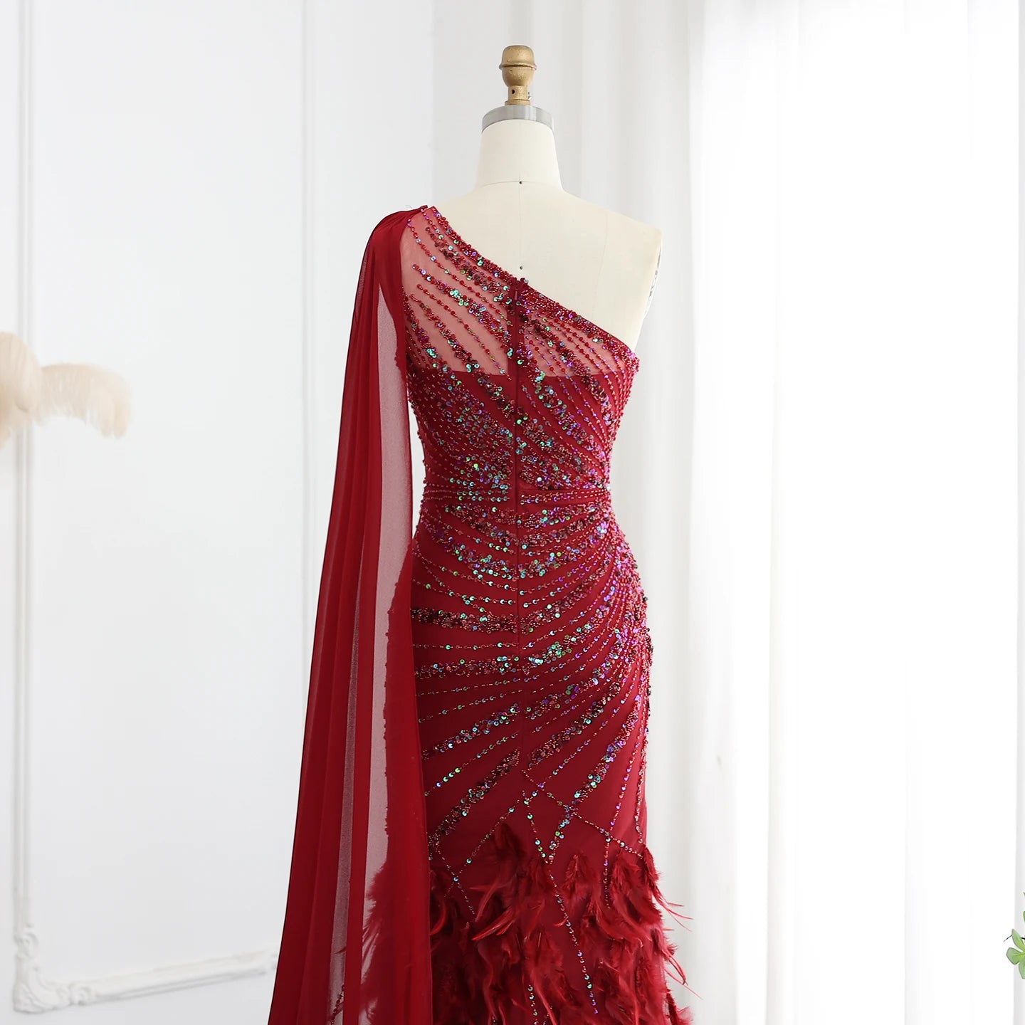تألقي بإطلالة استثنائية مع هذا الفستان الفاخر المصنوع من قماش الشيفون الانسيابي. يتميز بتصميم الكتف الواحد الذي يضفي لمسة عصرية أنيقة، مع تطريز فاخر من الخرز والترتر الذي يغمر التصميم بلمعان ساحر. تتناثر تفاصيل الريش الناعمة في أسفل الفستان لتمنحك حركة ديناميكية وجاذبية راقية، بينما ينسدل الشال الخلفي الطويل بانسيابية ملكية تضيف فخامة استثنائية. فستان يجمع بين الأنوثة والفخامة ليمنحك حضوراً لا يُنسى في المناسبات الخاصة.