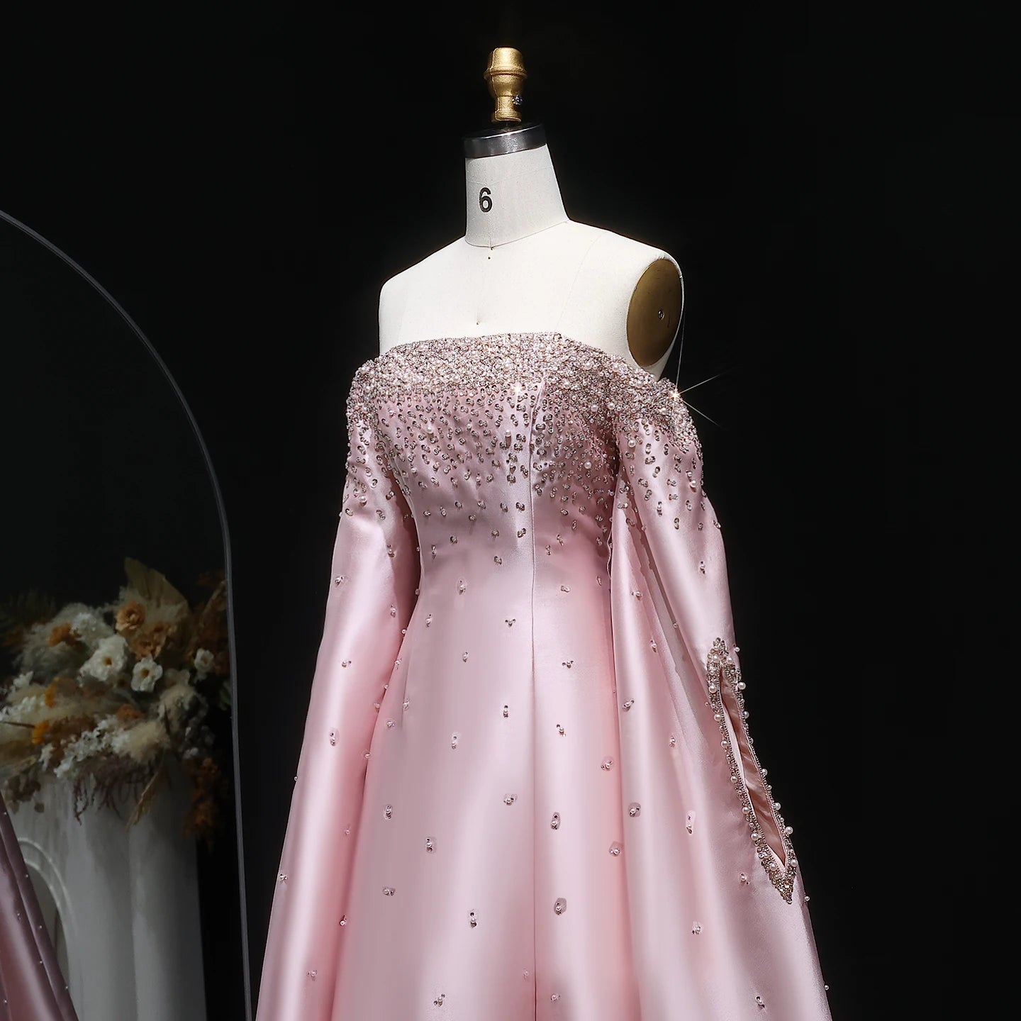 فستان سهرة ملكي تل لامع بتطريز لؤلؤي وأكتاف مكشوفة