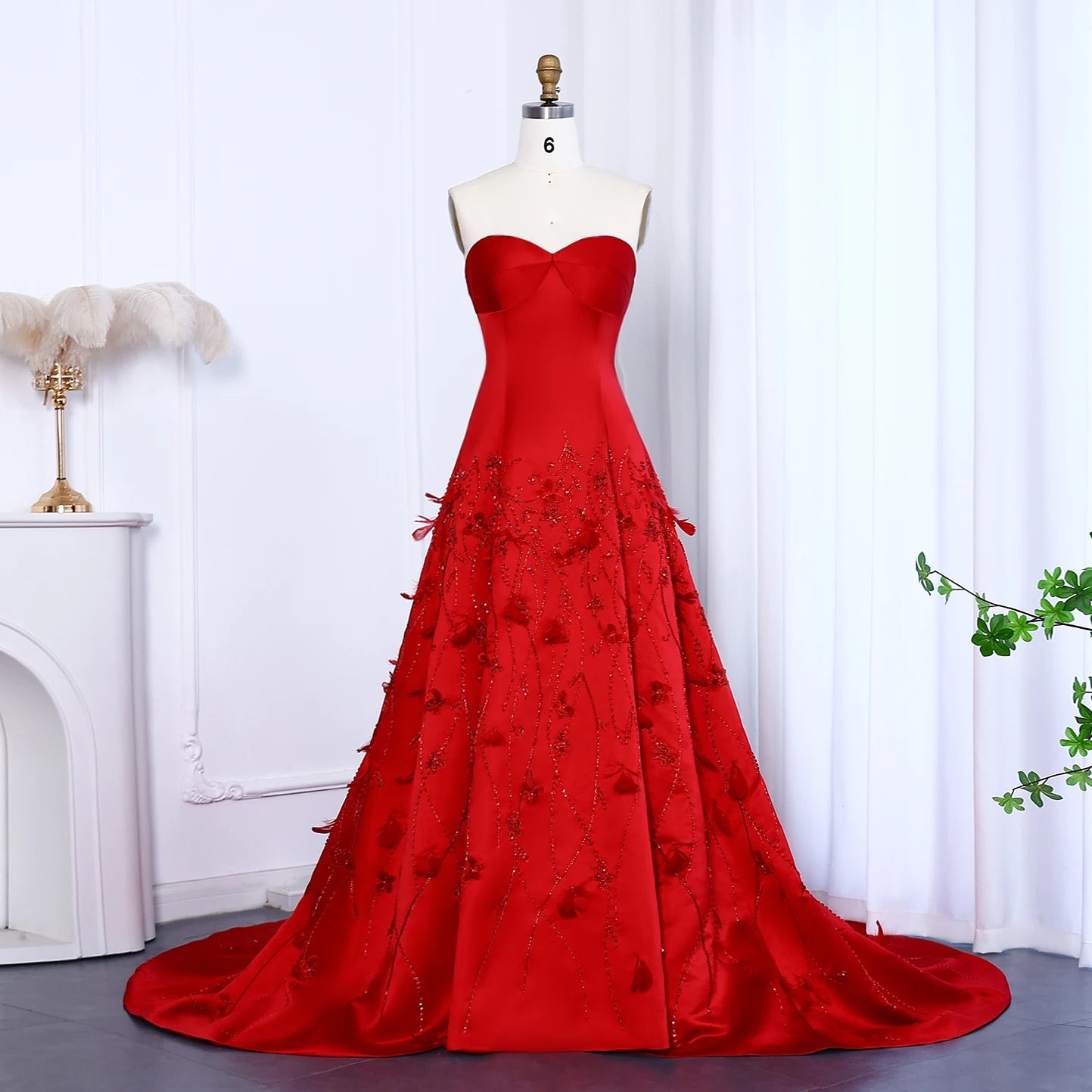 فستان سواريه أحمر ملكي مطرّز بلمسات فاخرة