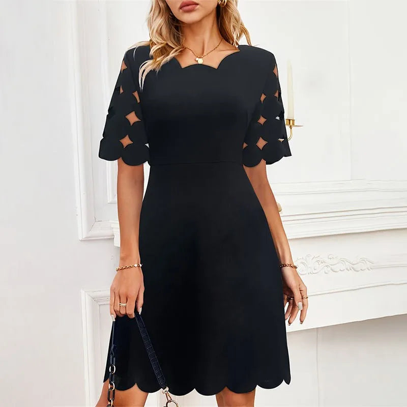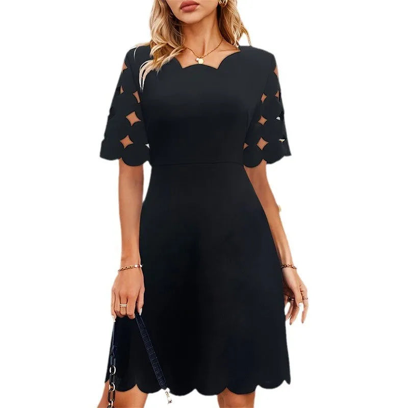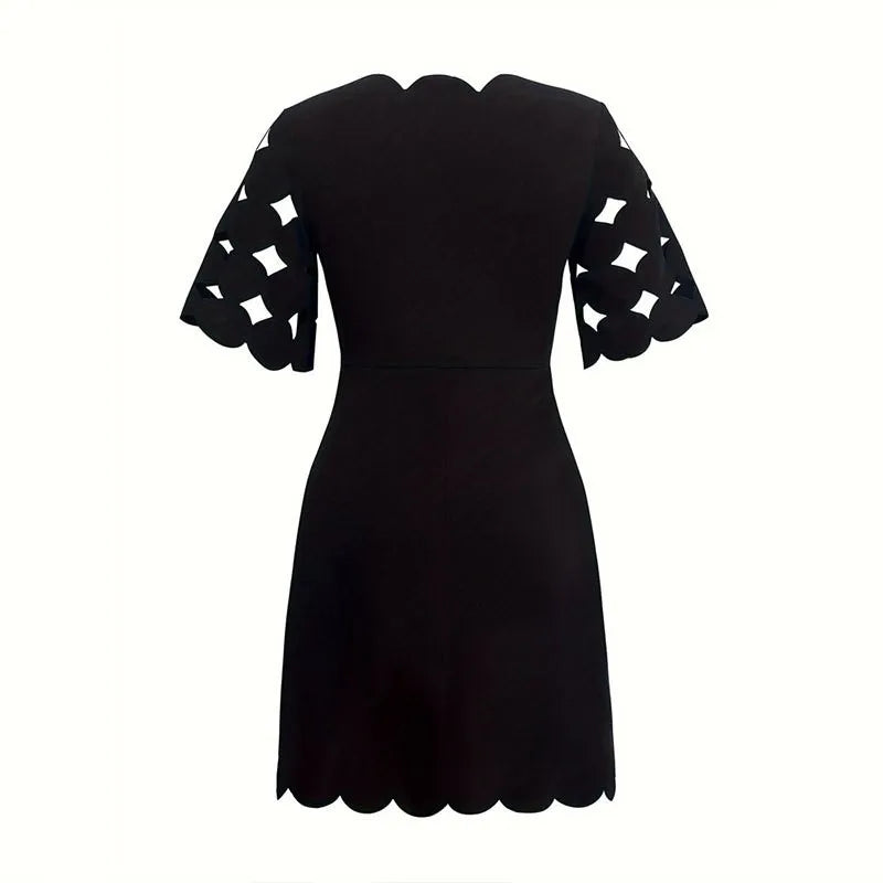 بلوزة نسائية سوداء أنيقة بياقة دائرية وأكمام قصيرة ومزخرفة بنقشة زهور متعددة الاستخدامات