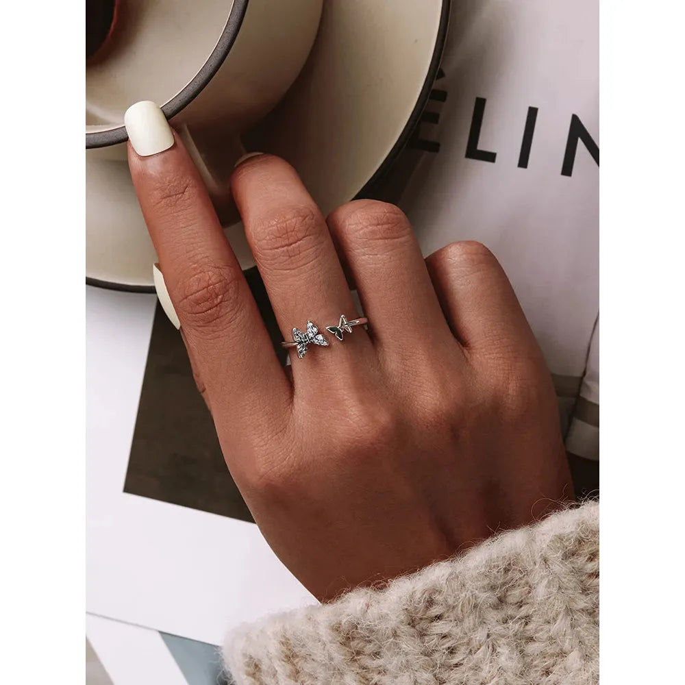 خاتم مفتوح الأصابع على شكل فراشة مرصعة بالزركونيوم