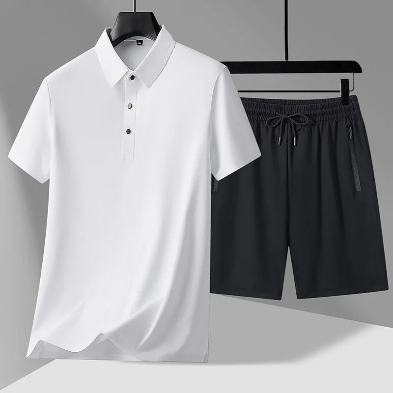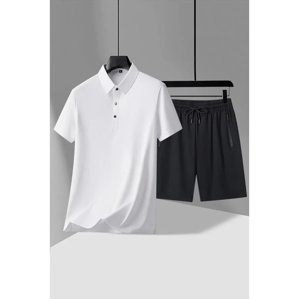 طقم قميص أبيض أنيق غير رسمي وشورت داكن: أسلوب متعدد الاستخدامات
