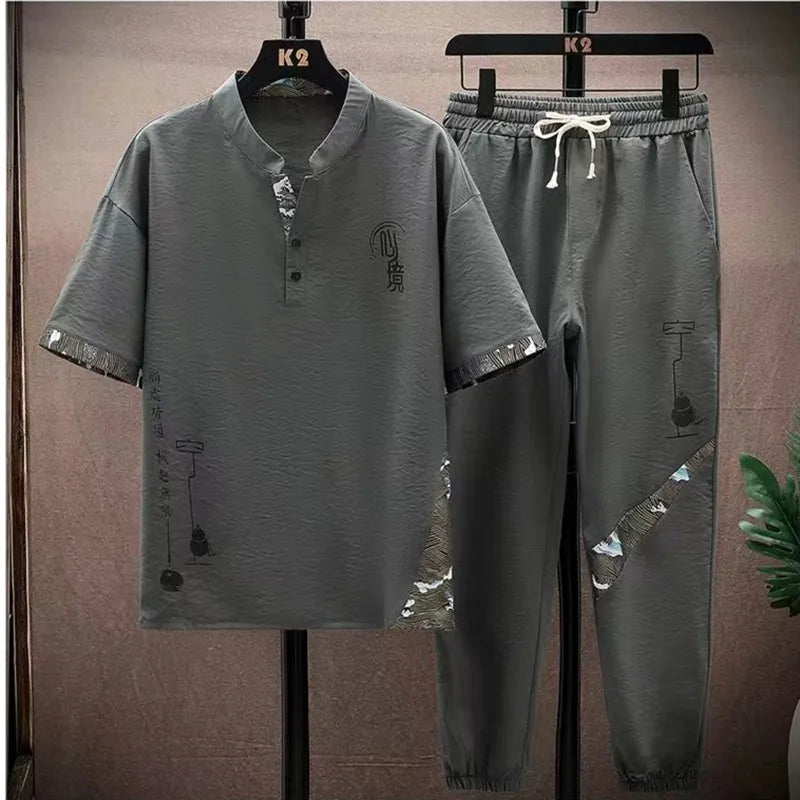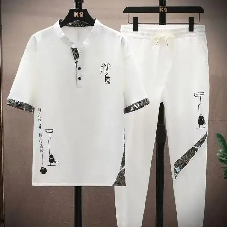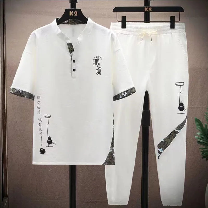 طقم مكون من قطعتين برسومات أنيقة باللون الأبيض: كاجوال معاصر